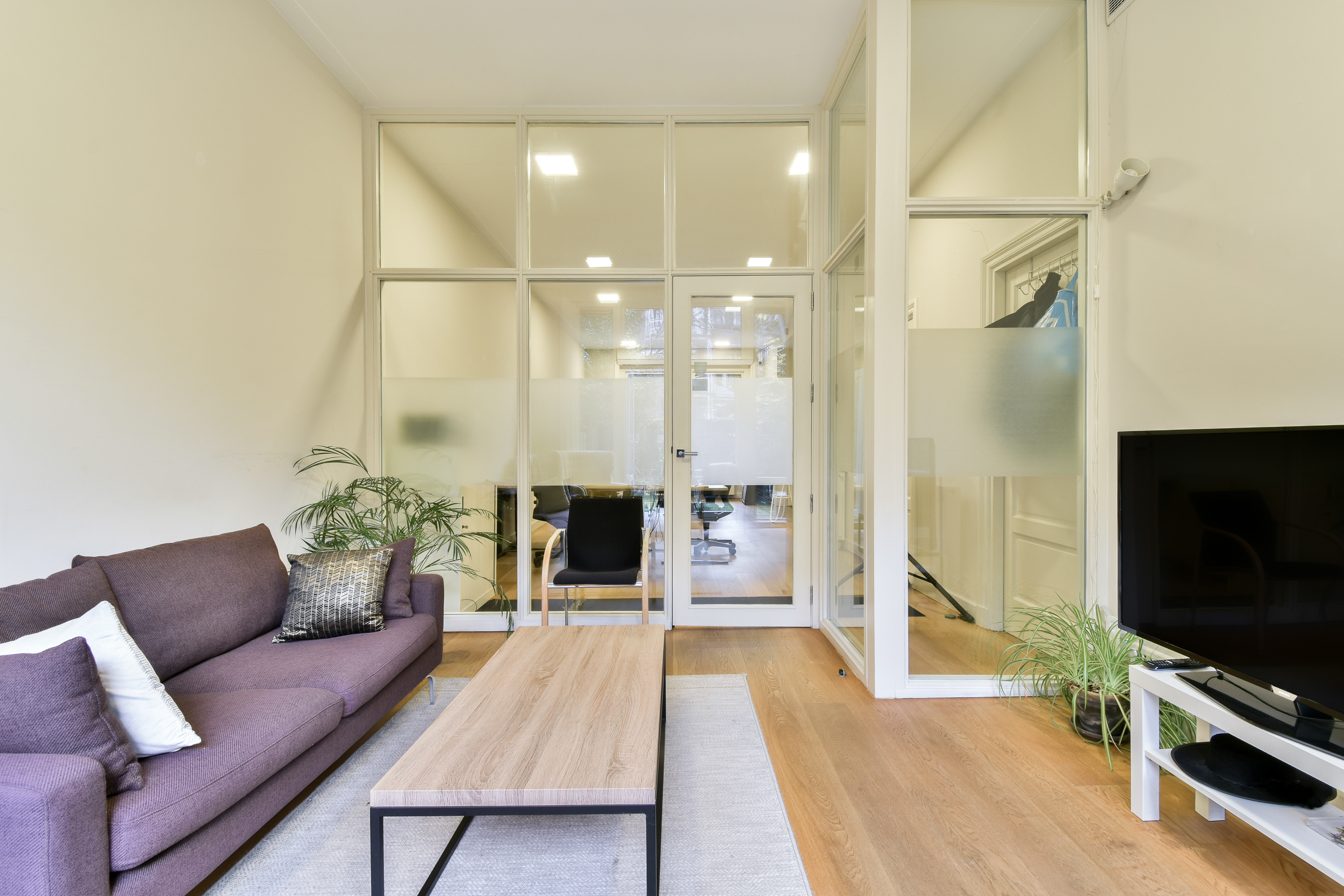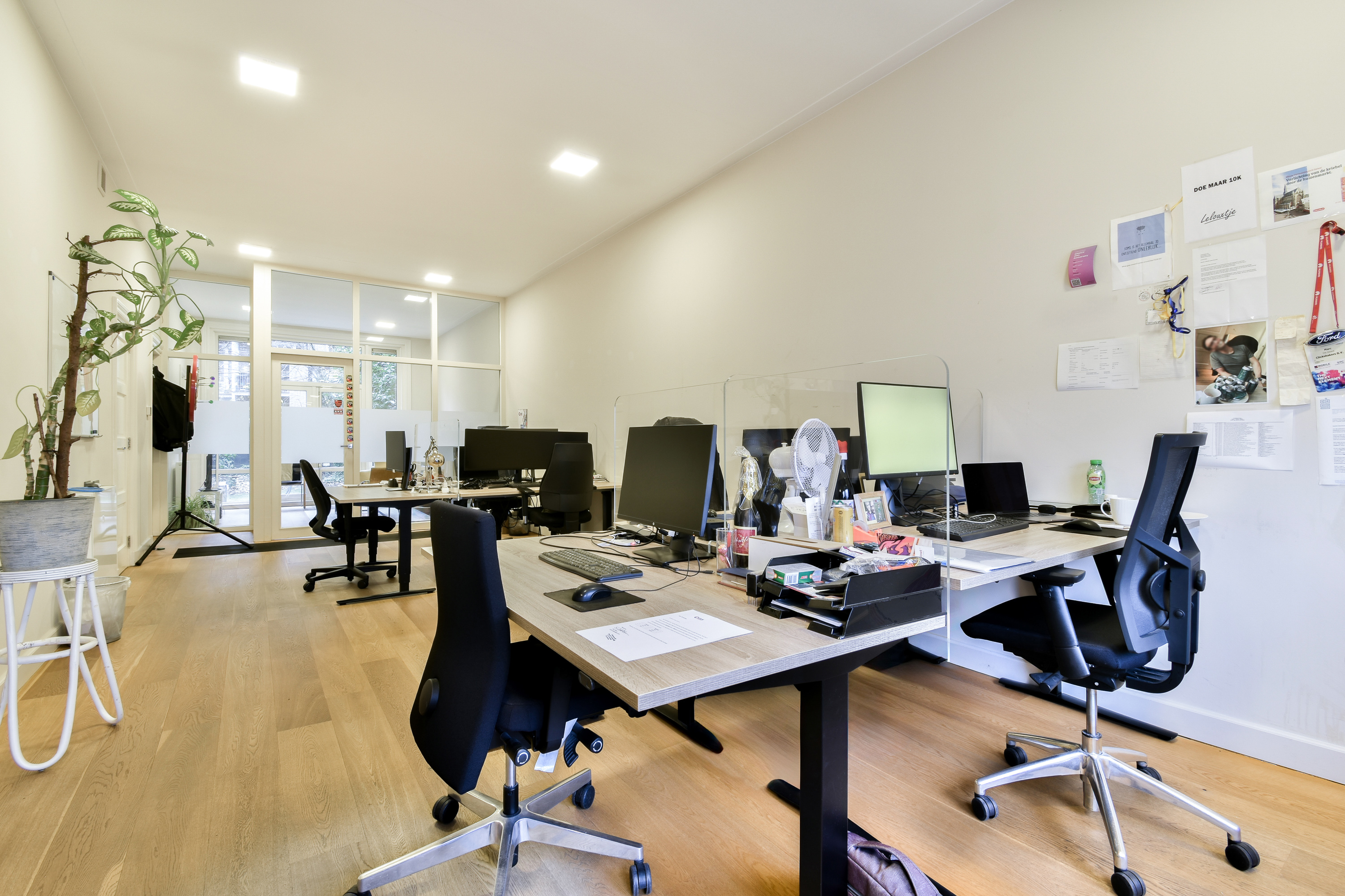 This atmospheric office space of approximately 77 m² is located in a characteristic building and stands out due to its authentic details, spacious garden, and abundant natural daylight. The space is delivered with flooring and includes a pantry, toilet, and private connections for water and electricity.