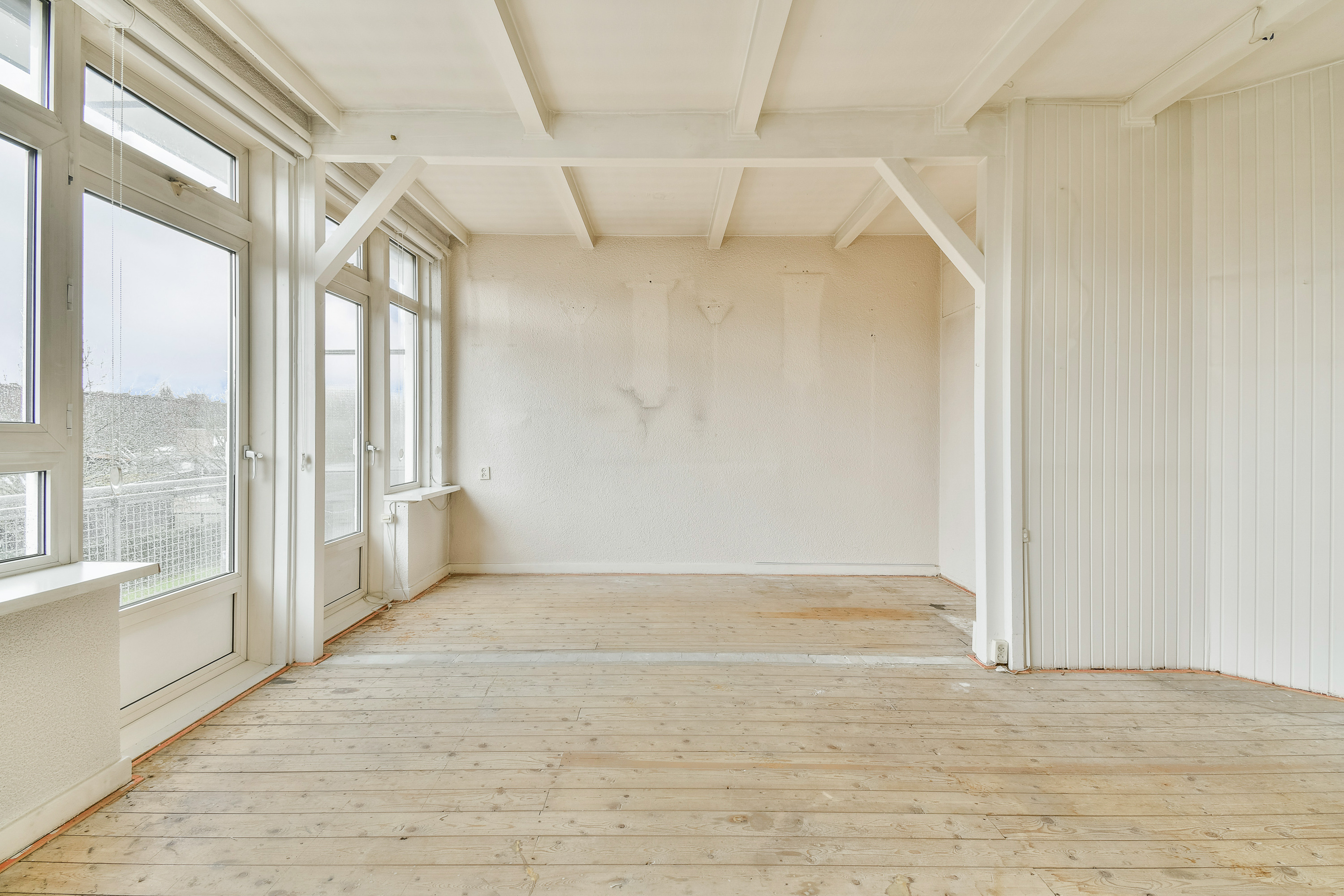 At the front of the apartment is the living room with adjoining dining room. The space has a pleasant width and is characterized by large windows, allowing plenty of natural daylight to enter. From the living room there is access to the front balcony of approximately 3 m², offering unobstructed views over the Wachterliedplantsoen and the neighborhood children’s farm.
