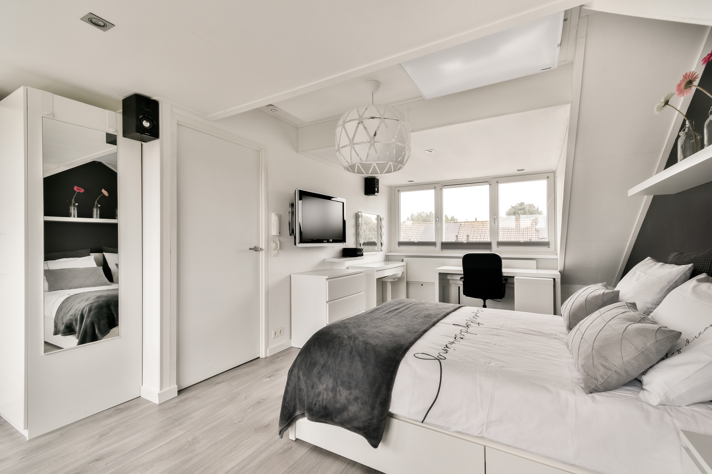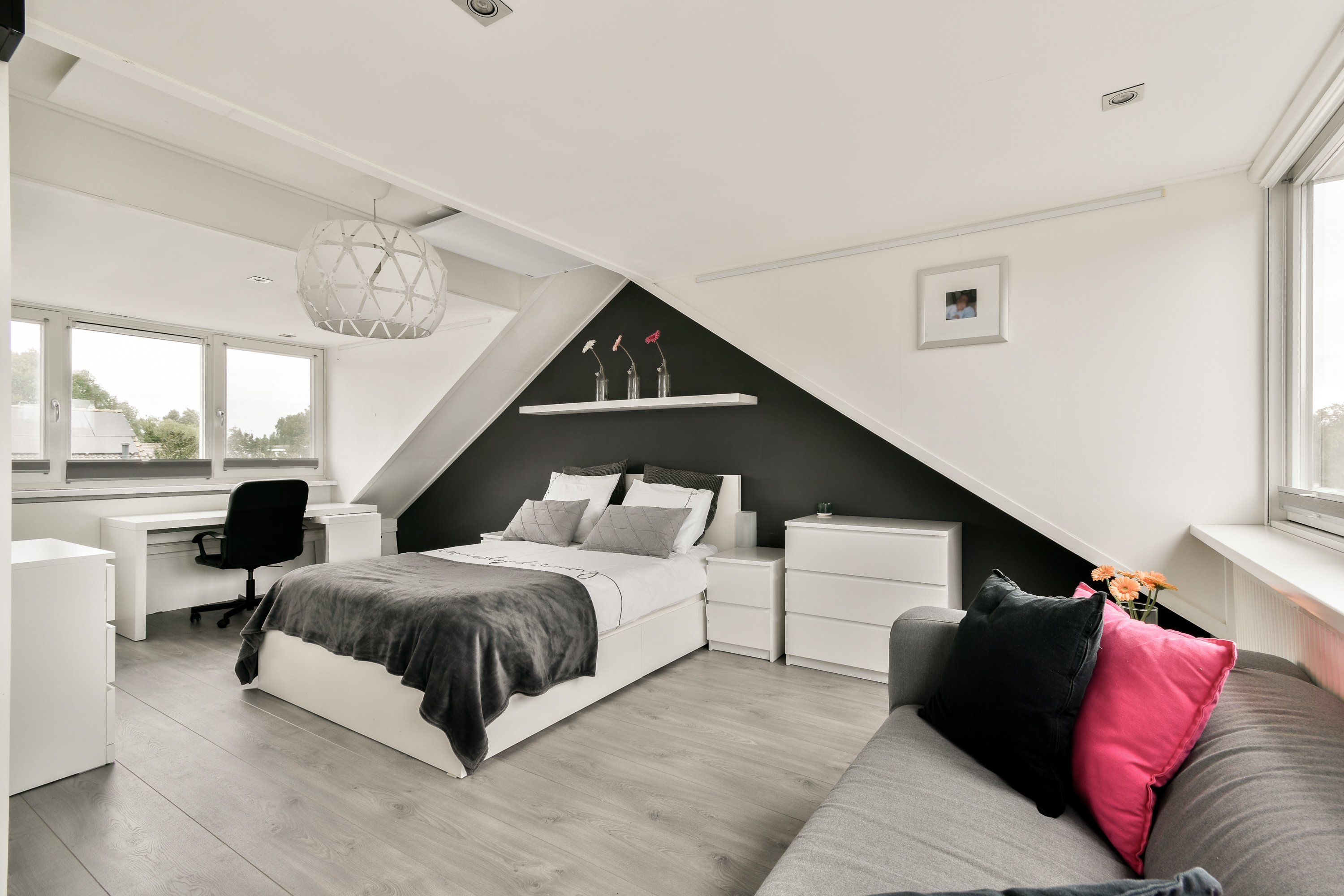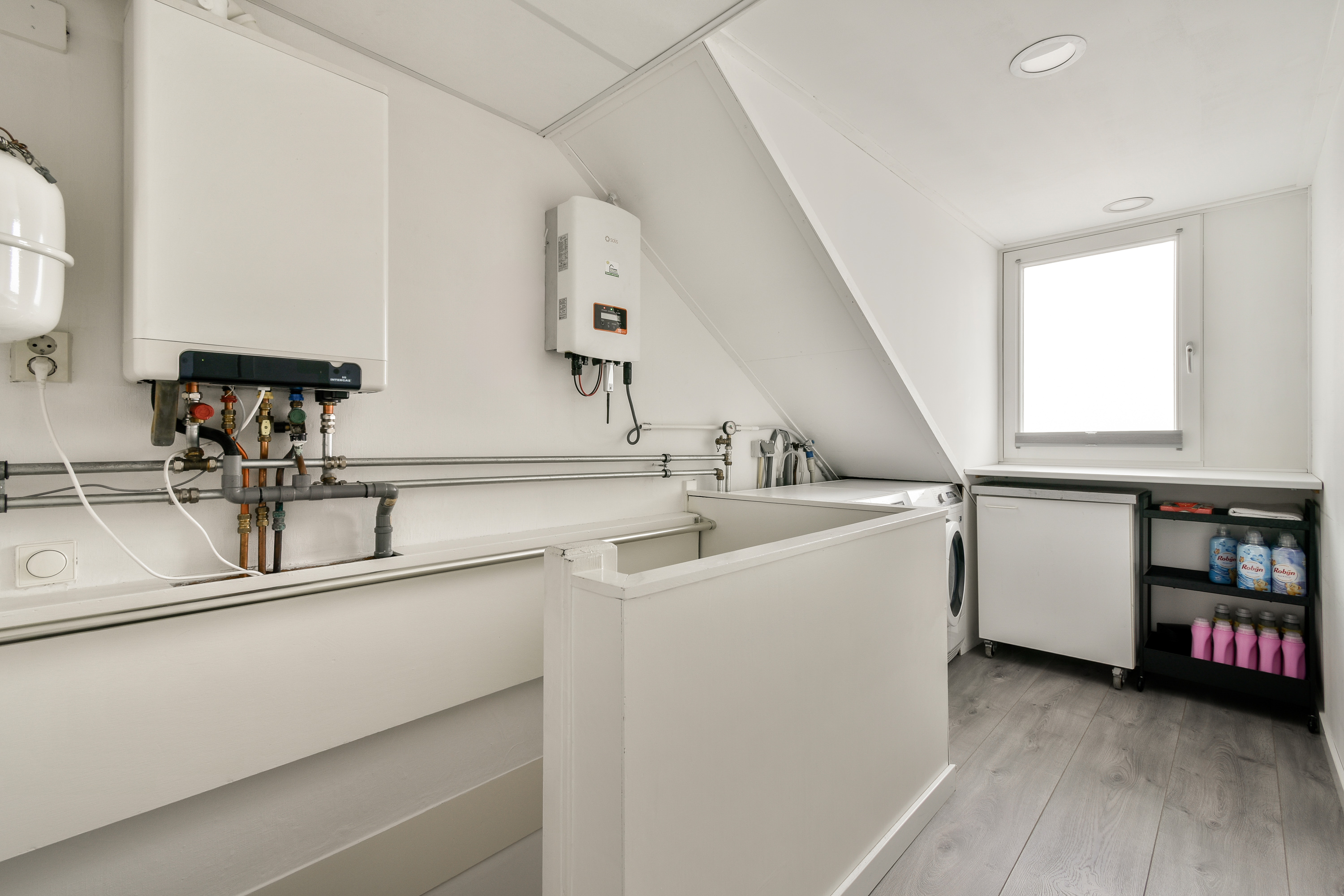Landing with connections for a washing machine and dryer. On this floor, there is a third spacious bedroom, which has dormer windows at both the front and rear. If needed, this space can also be divided into two rooms to create an additional bedroom.