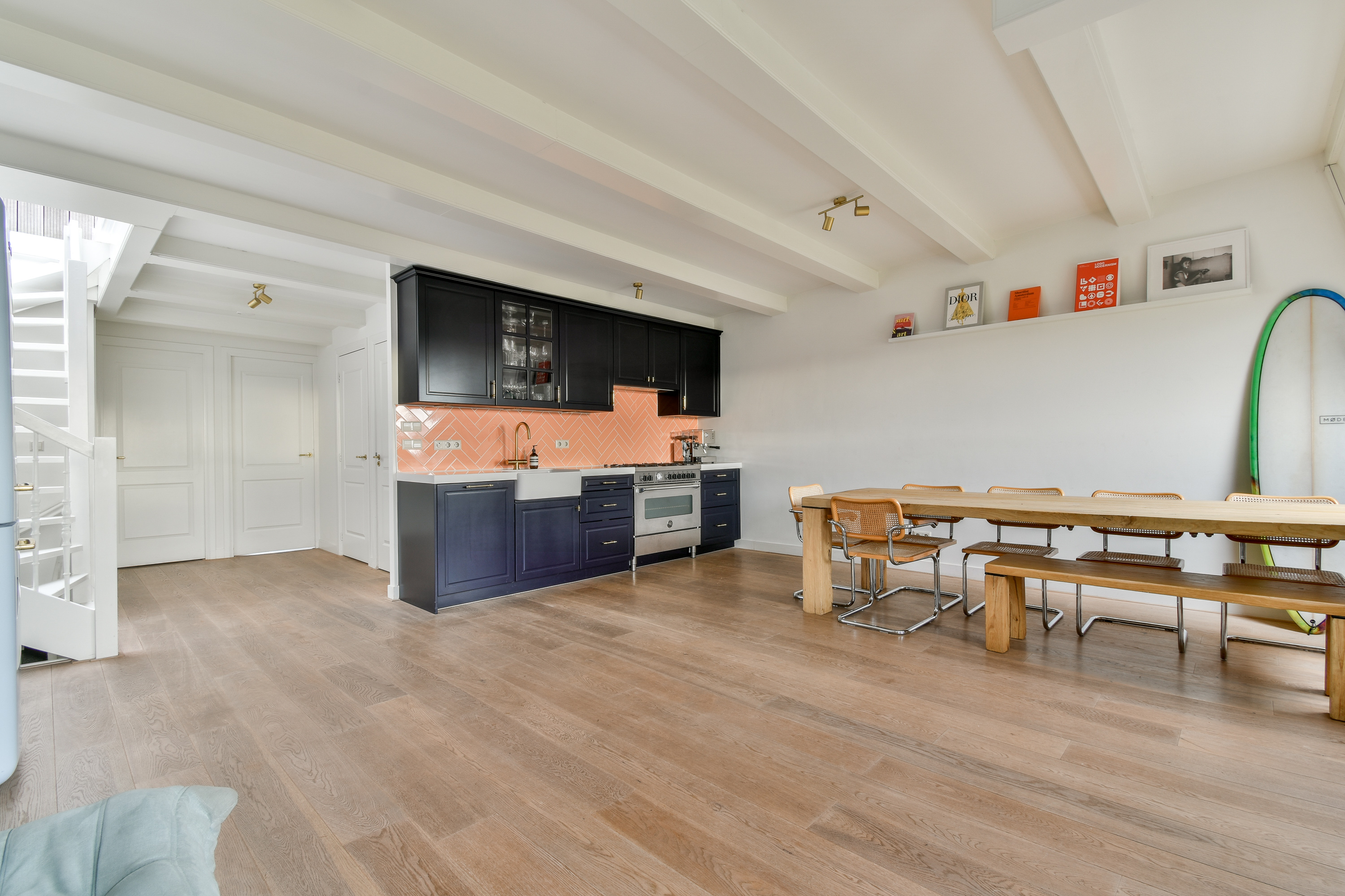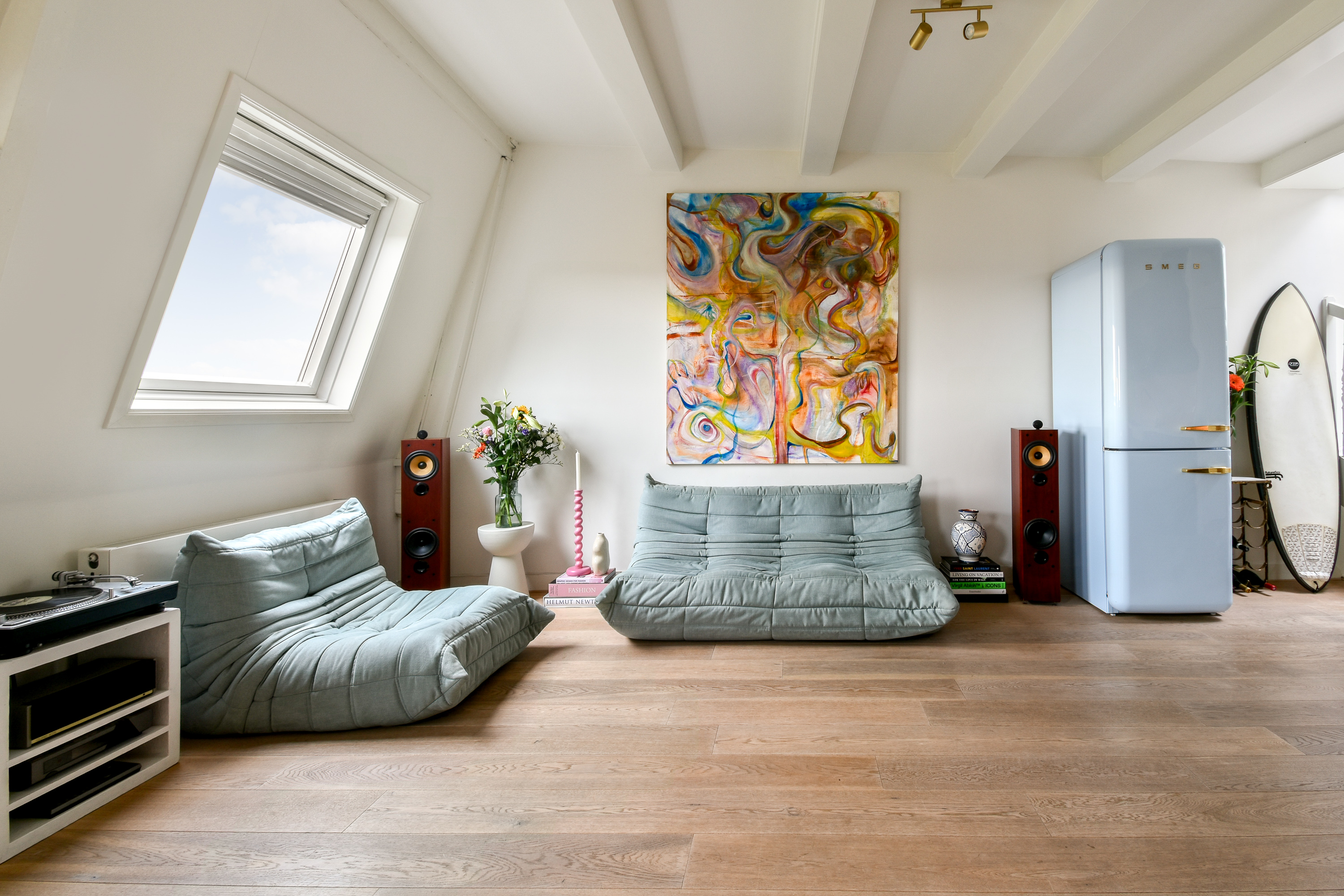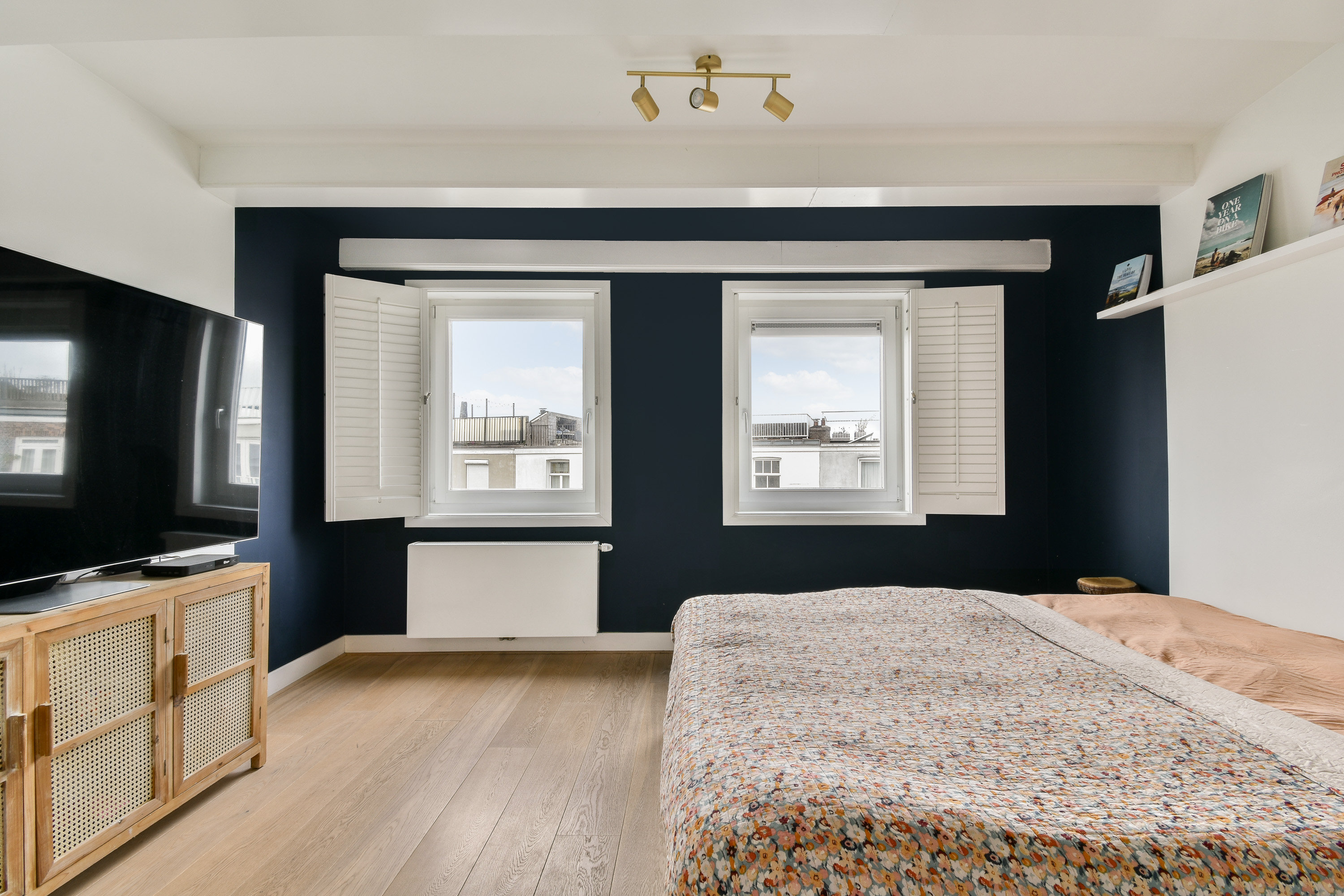 In the sought-after Oud-West neighborhood, overlooking the Singelgracht canal and the Jordaan district, we are offering this wonderfully light and attractive three-room apartment. Located on the fourth and top floor of a characteristic Amsterdam building, this property offers a living area of 76 m², two good-sized bedrooms, and a spacious roof terrace of over 50 m² with phenomenal views over the city. The building was renovated in 2011, including a new foundation, combining modern comfort with authentic Amsterdam charm.