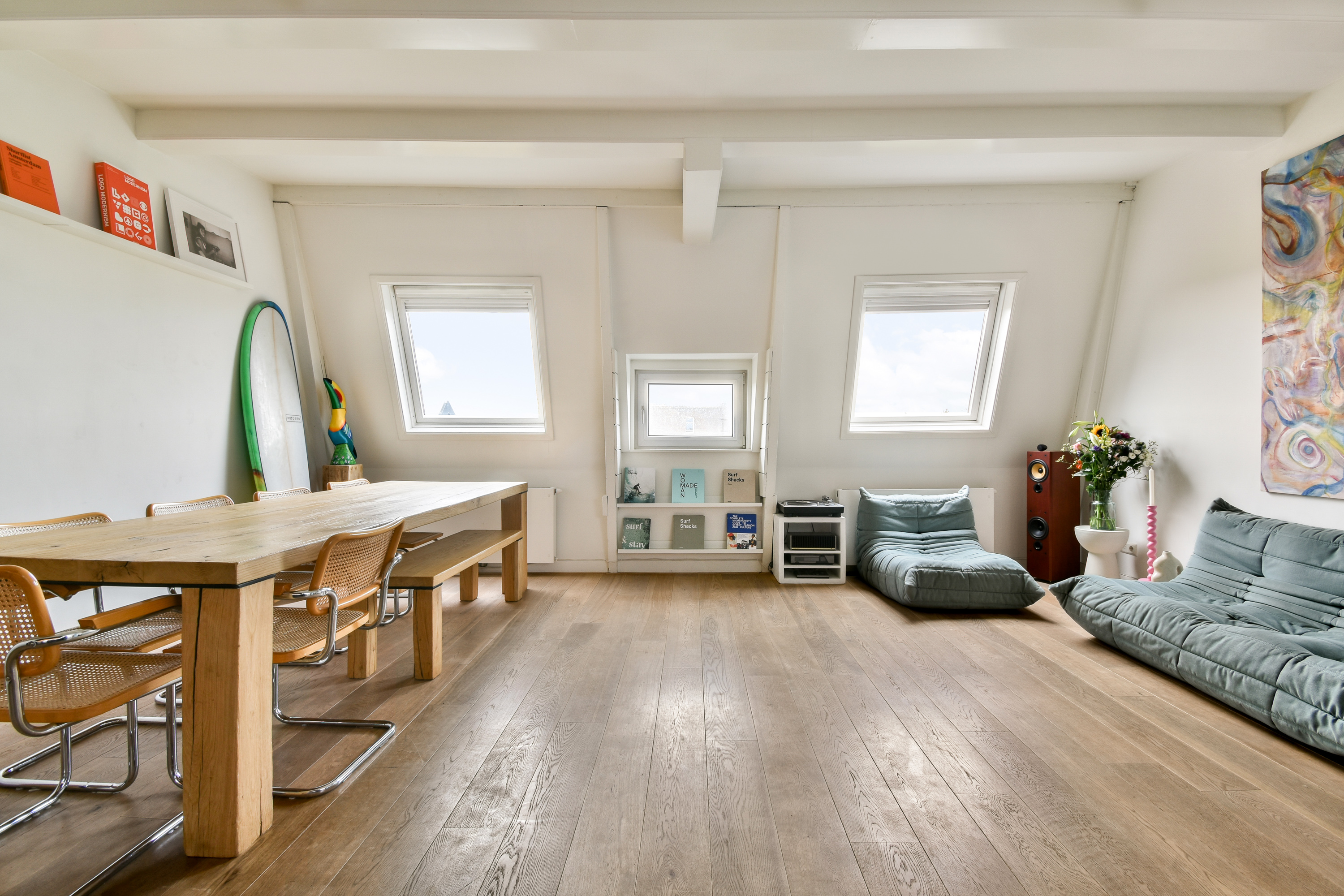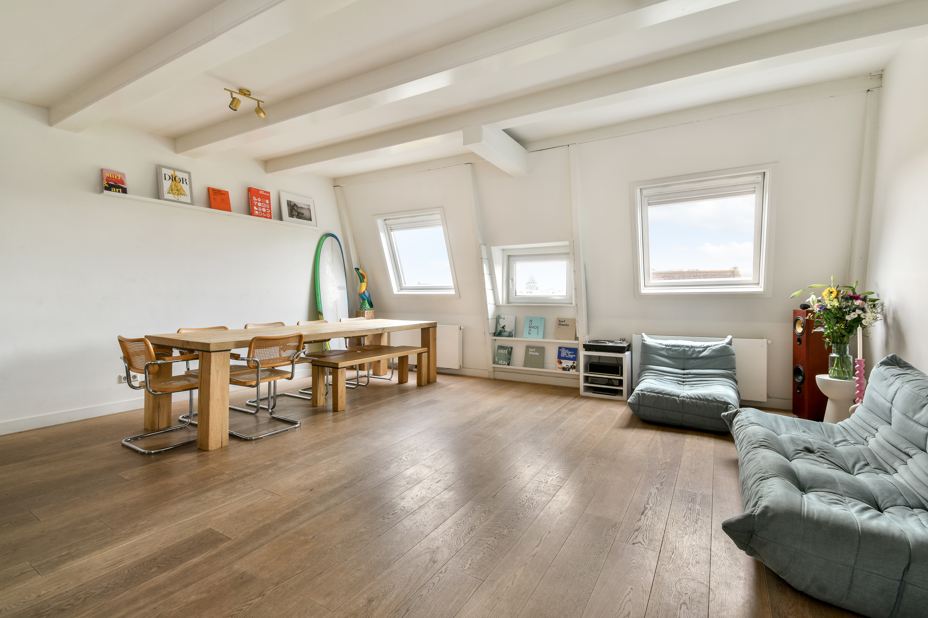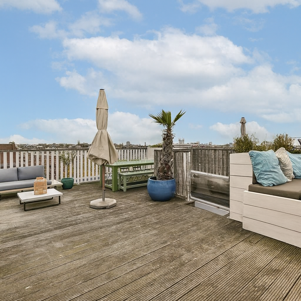 In the sought-after Oud-West neighborhood, overlooking the Singelgracht canal and the Jordaan district, we are offering this wonderfully light and attractive three-room apartment. Located on the fourth and top floor of a characteristic Amsterdam building, this property offers a living area of 76 m², two good-sized bedrooms, and a spacious roof terrace of over 50 m² with phenomenal views over the city. The building was renovated in 2011, including a new foundation, combining modern comfort with authentic Amsterdam charm.