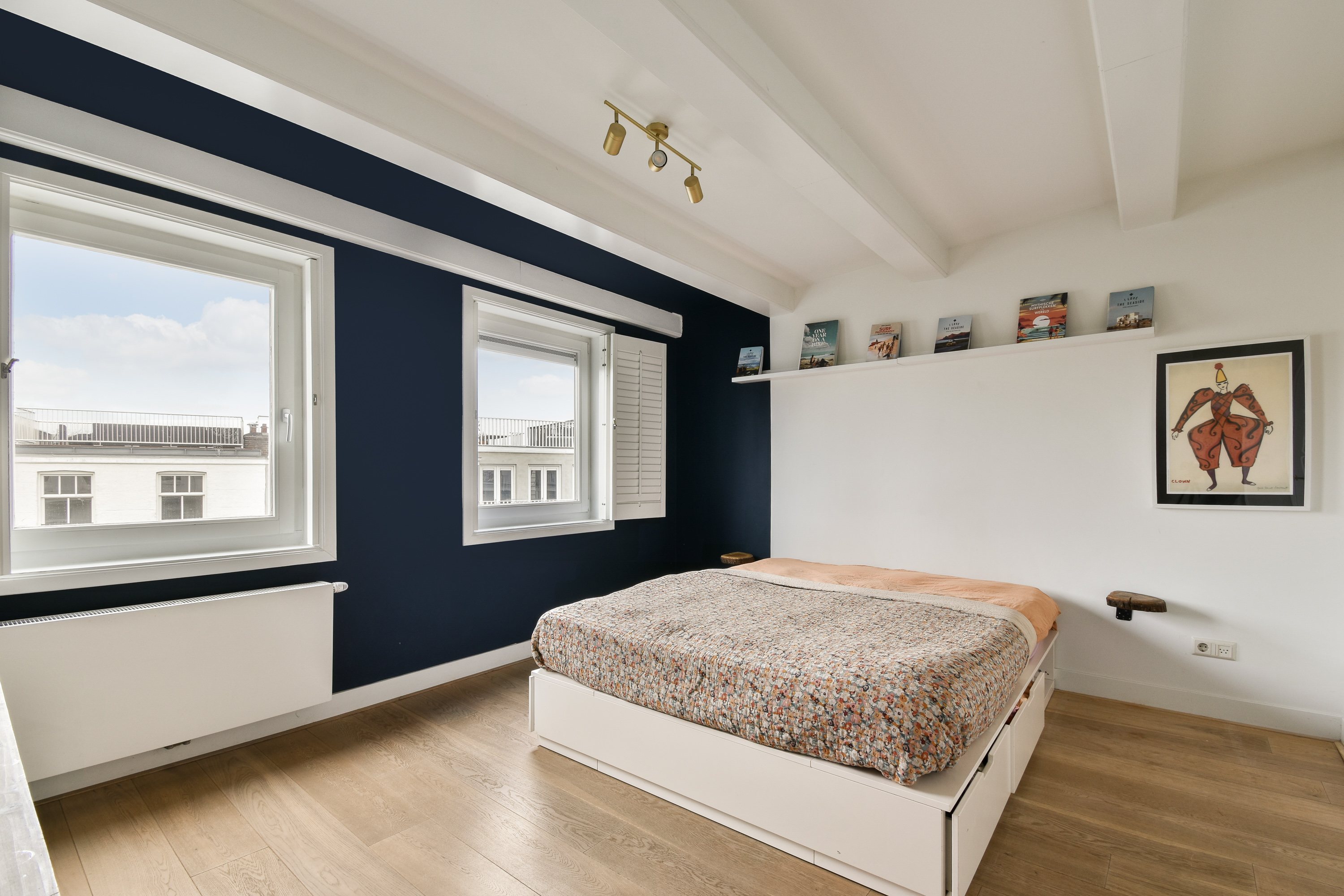 The neat staircase leads to the entrance of the apartment on the fourth floor. The hall provides access to all rooms. At the front is the bright living room with beautiful views over the Singelgracht. The modern open kitchen connects seamlessly to the living room and is equipped with various built-in appliances, including a 6-burner gas stove, oven, extractor hood, boiling water tap, and dishwasher. There is enough space here for a large dining table that seats 10 people. At the quiet rear of the house are two good-sized bedrooms. The master bedroom offers enough space for a double bed and a large closet, while the second room is ideal as a guest room, children's room, or study.