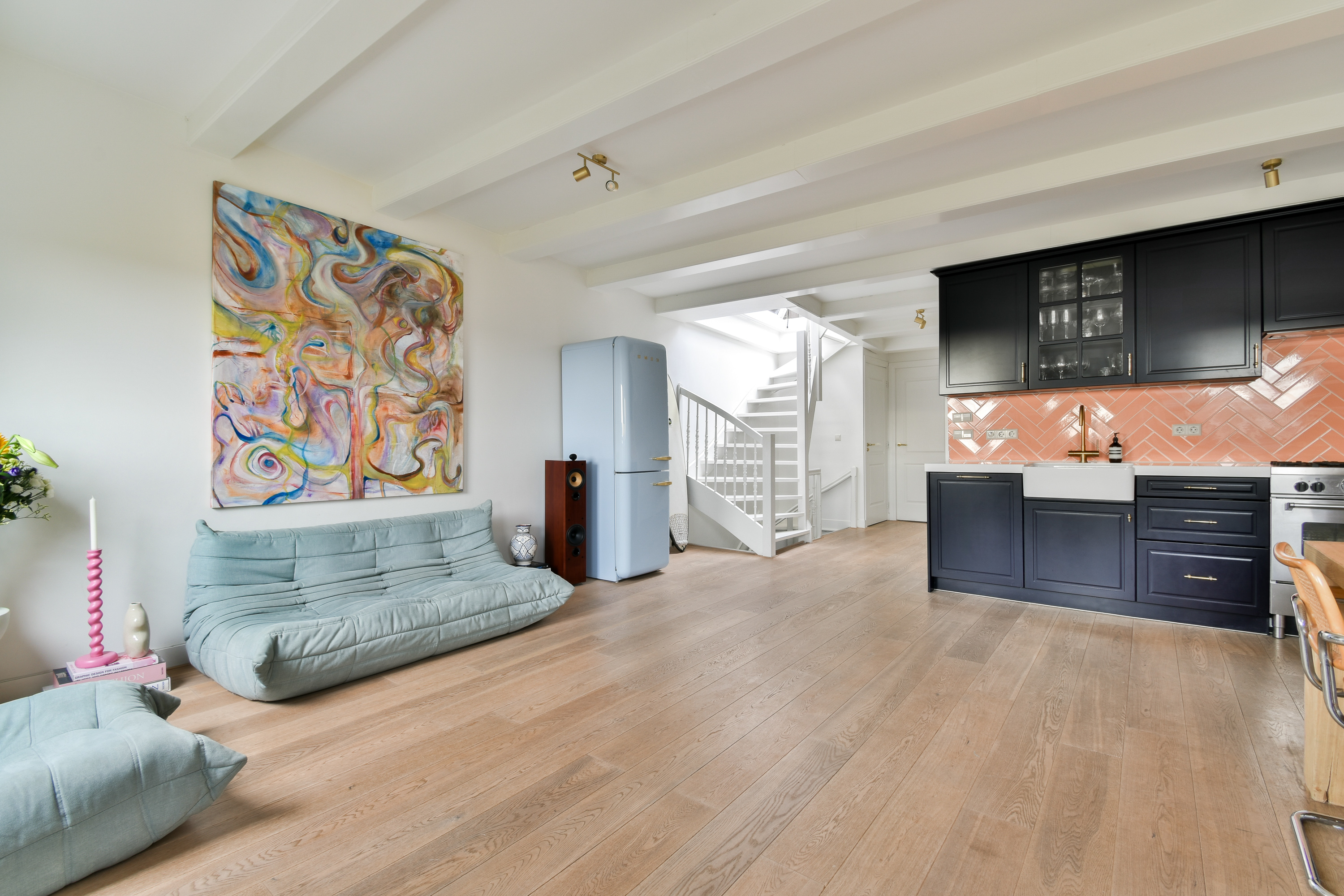 The property is located on Nassaukade, on the edge of the Jordaan, in the popular Oud-West district. A vibrant neighborhood with countless cafés, restaurants, and specialty shops. The Nine Streets, the Noordermarkt, and Hugo de Grootplein are within walking distance, as are supermarkets and local shops. Accessibility is excellent: various tram and bus lines stop around the corner, and the A10 ring road is just a few minutes away by car. Parking is available through the municipal permit system.