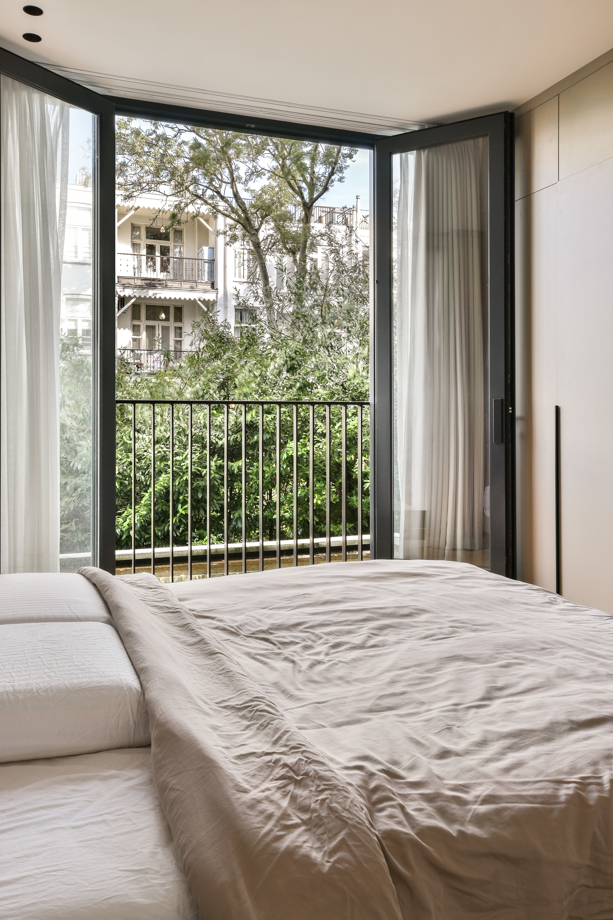 Het appartement is afgewerkt met elegante beigekleurige tegels in de badkamers en beschikt in alle ruimtes over een fraaie houten parketvloer met comfortabele vloerverwarming. Een hoogwaardig en instapklaar appartement met veel licht, buitenruimte en luxe afwerking, gelegen op een geliefde locatie in Amsterdam-Zuid.