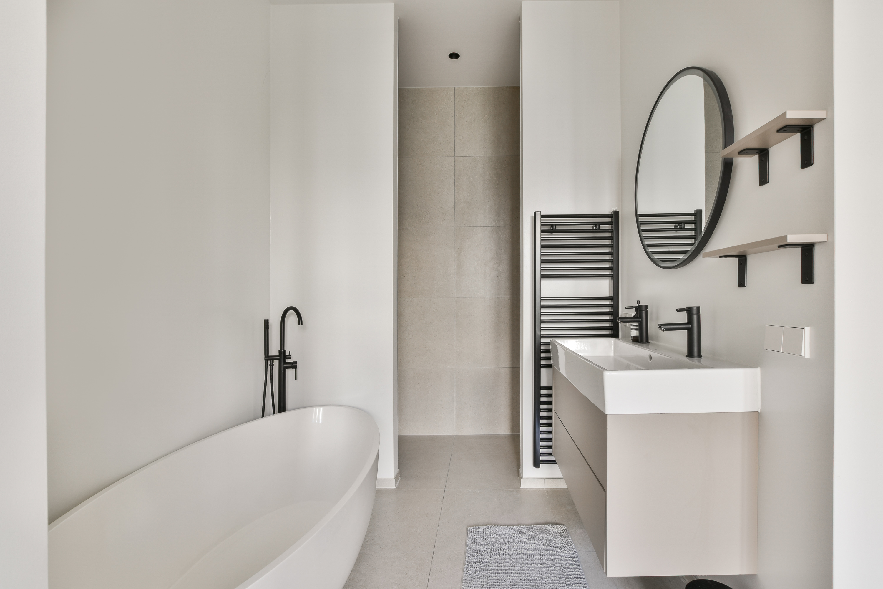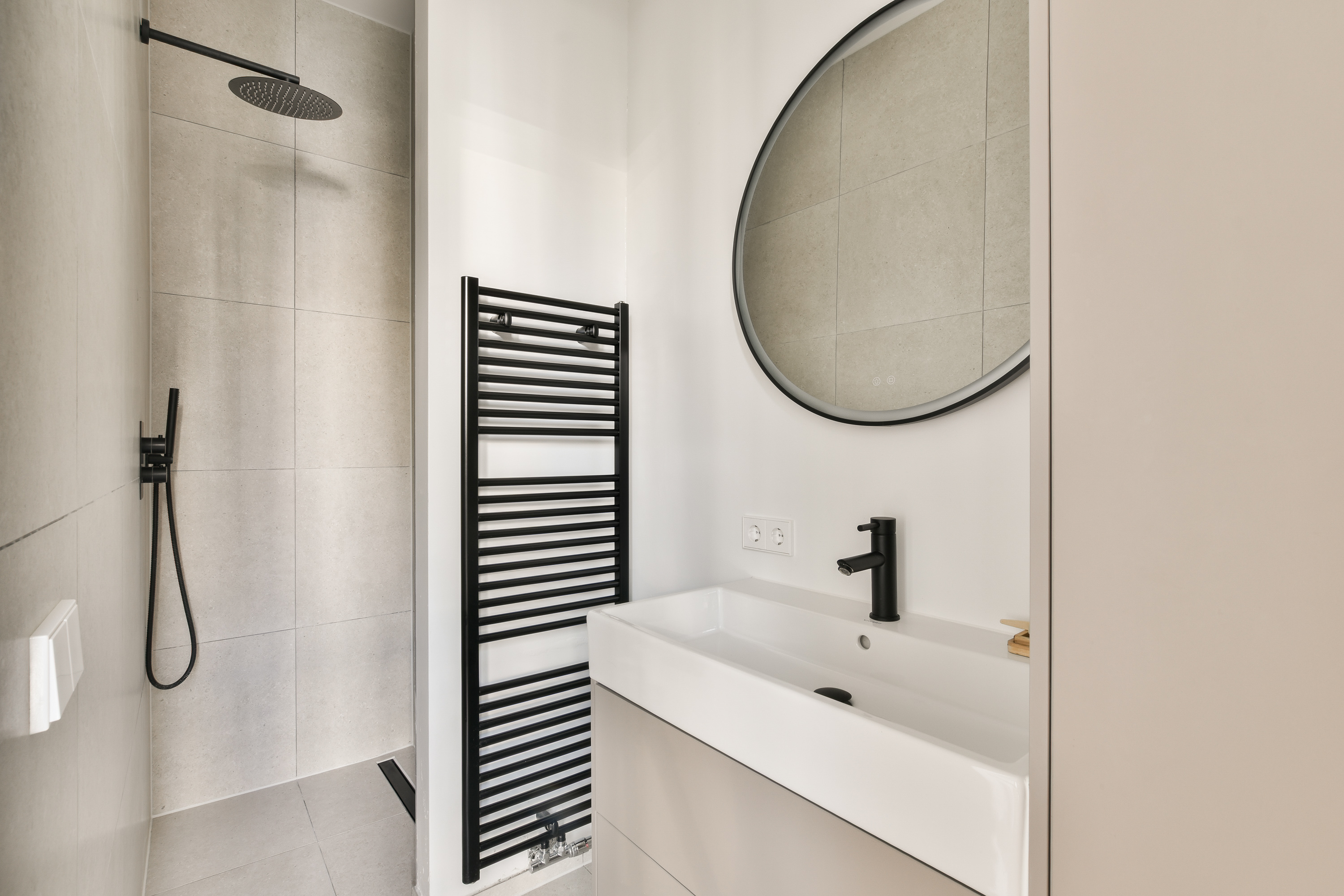 Aan de rustige achterzijde liggen twee comfortabele slaapkamers. De hoofdslaapkamer beschikt over een loopdeur naar het ruime balkon en een luxe badkamer-en-suite. Deze badkamer is hoogwaardig afgewerkt en voorzien van een ovaal ligbad, wastafelmeubel, designradiator en inloopdouche.
