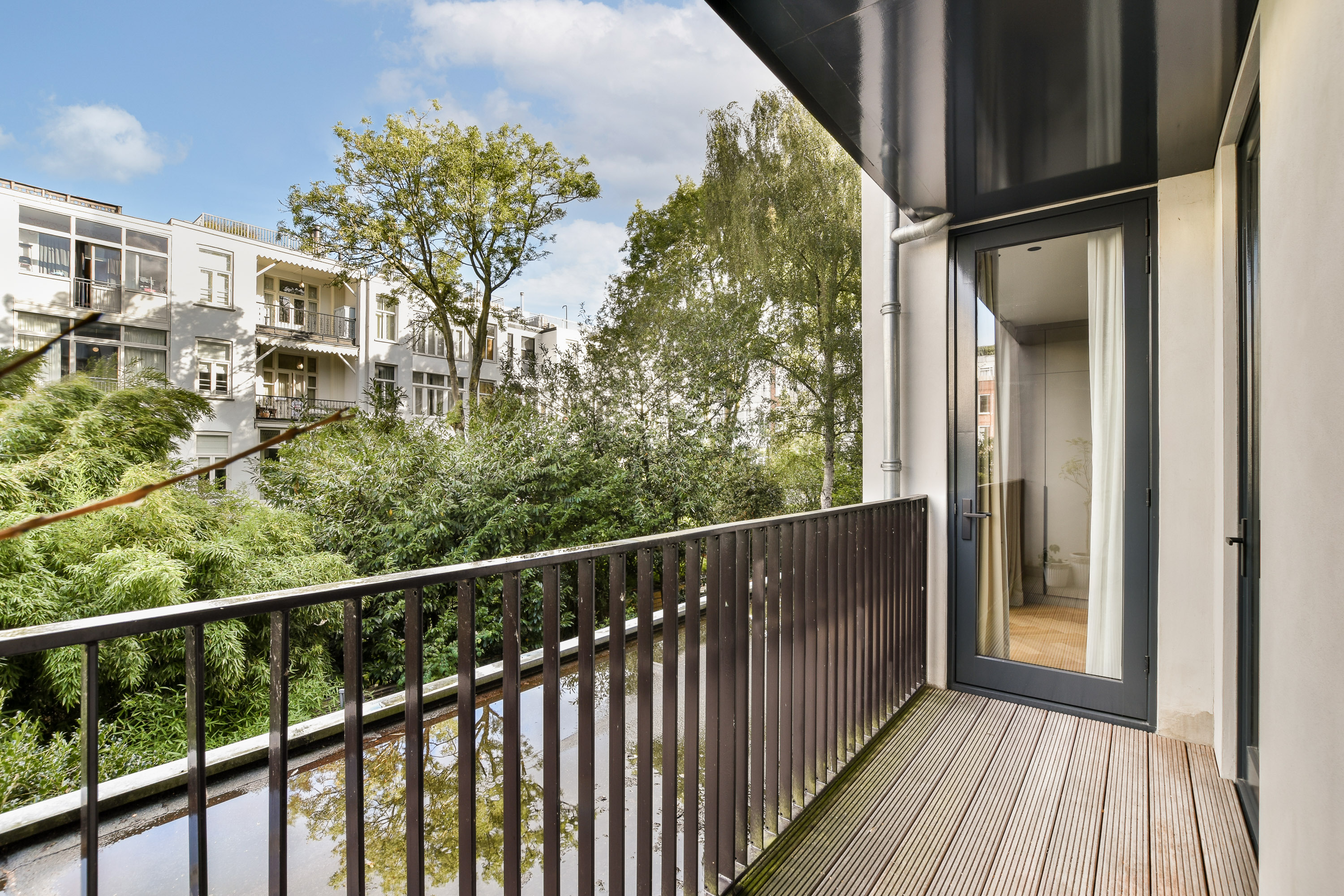 Het zonnige balkon is gelegen aan de achterzijde en heeft toegang tot beide slaapkamers.