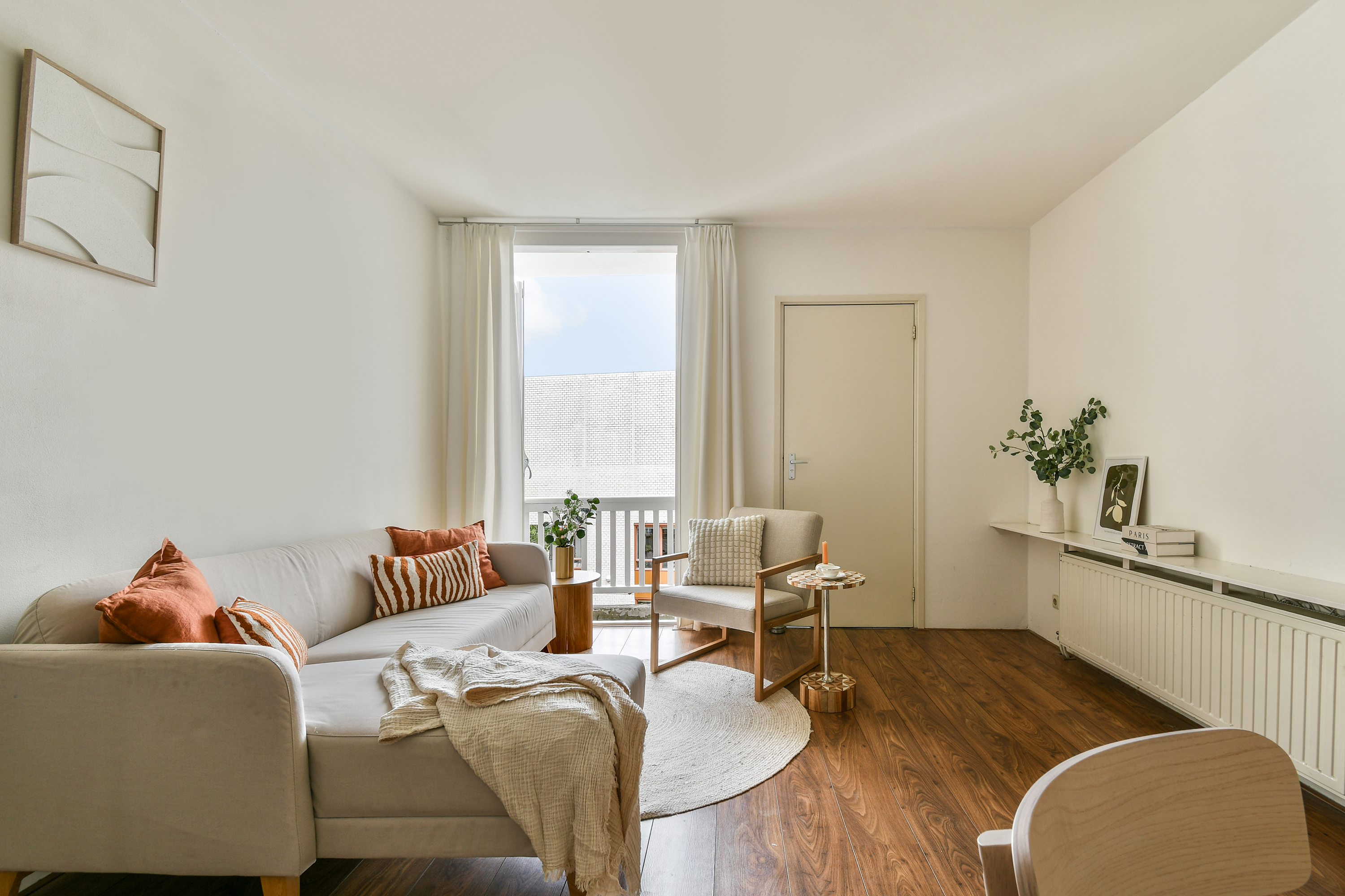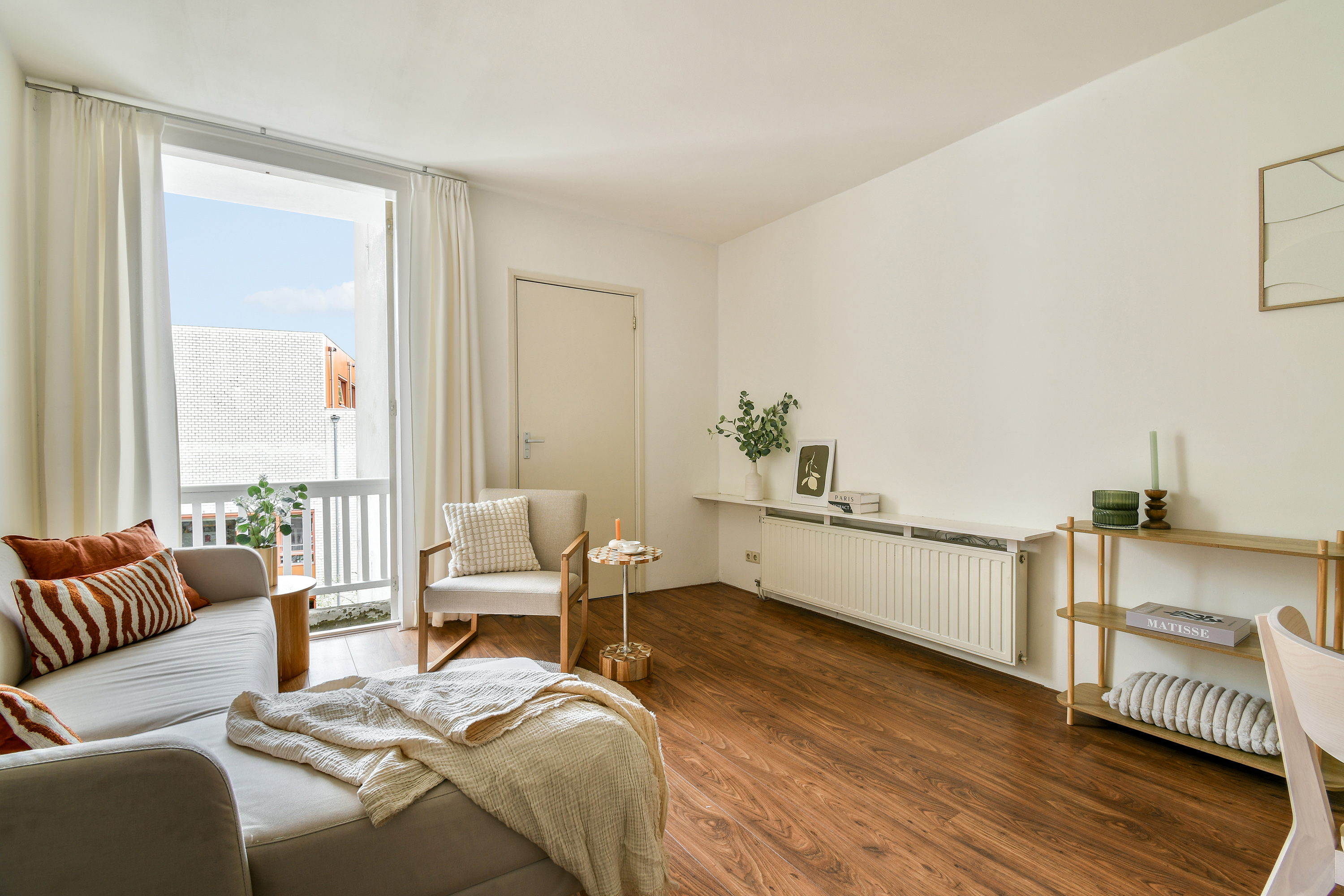 Via de nette gemeenschappelijke entree bereikt u dit charmante appartement op de tweede verdieping. Bij binnenkomst valt direct de compacte, maar volledig uitgeruste keuken op, met koelkast, vriezer, gaskookplaat, oven en vaatwasser – ideaal voor wie graag kookt zonder in te leveren op ruimte. De woonkamer, gelegen aan de achterzijde van het appartement, is het hart van de woning. Openslaande deuren geven toegang tot het balkon en laten veel natuurlijk licht binnenstromen, waardoor een warme en uitnodigende sfeer ontstaat. De badkamer, eveneens aan de achterzijde, is praktisch en comfortabel ingericht met een toilet, douche, ligbad, wastafel en een aansluiting voor de wasmachine. Aan de voorzijde van het appartement bevindt zich de ruime slaapkamer, uitgerust met grote kasten die voldoende opbergruimte bieden en de kamer een rustige, ordelijke uitstraling geven.