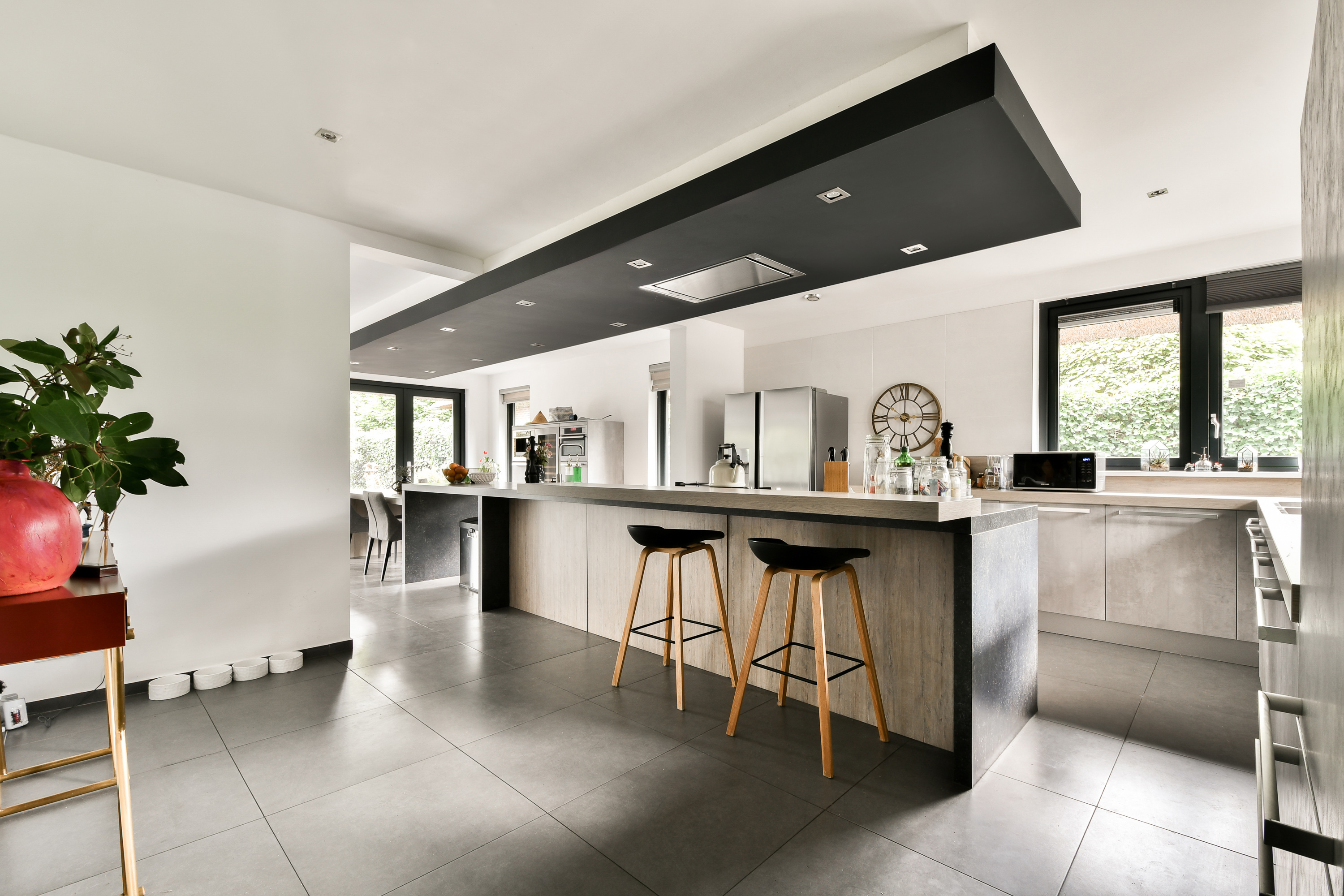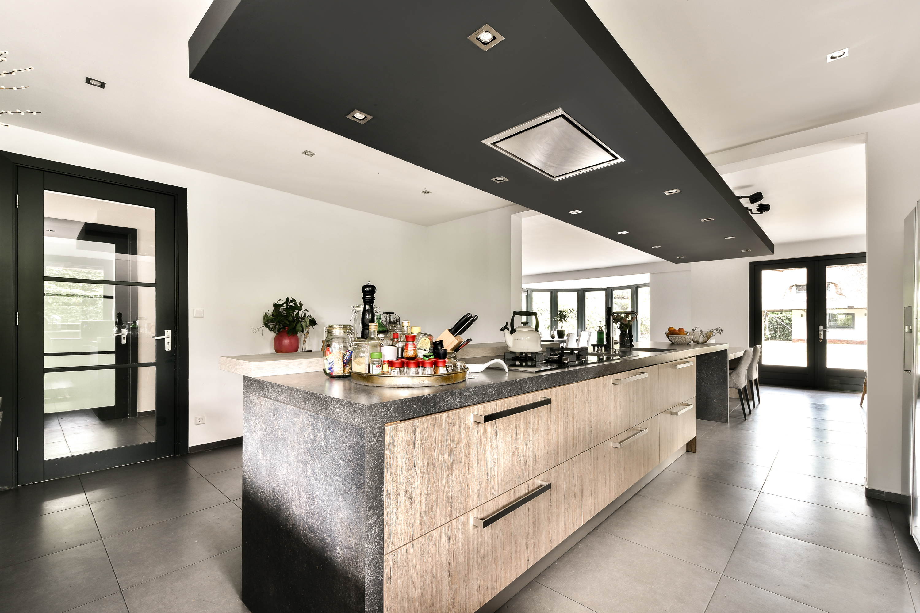 - Luxe keuken met bar en serre met uitzicht op de tuin;
