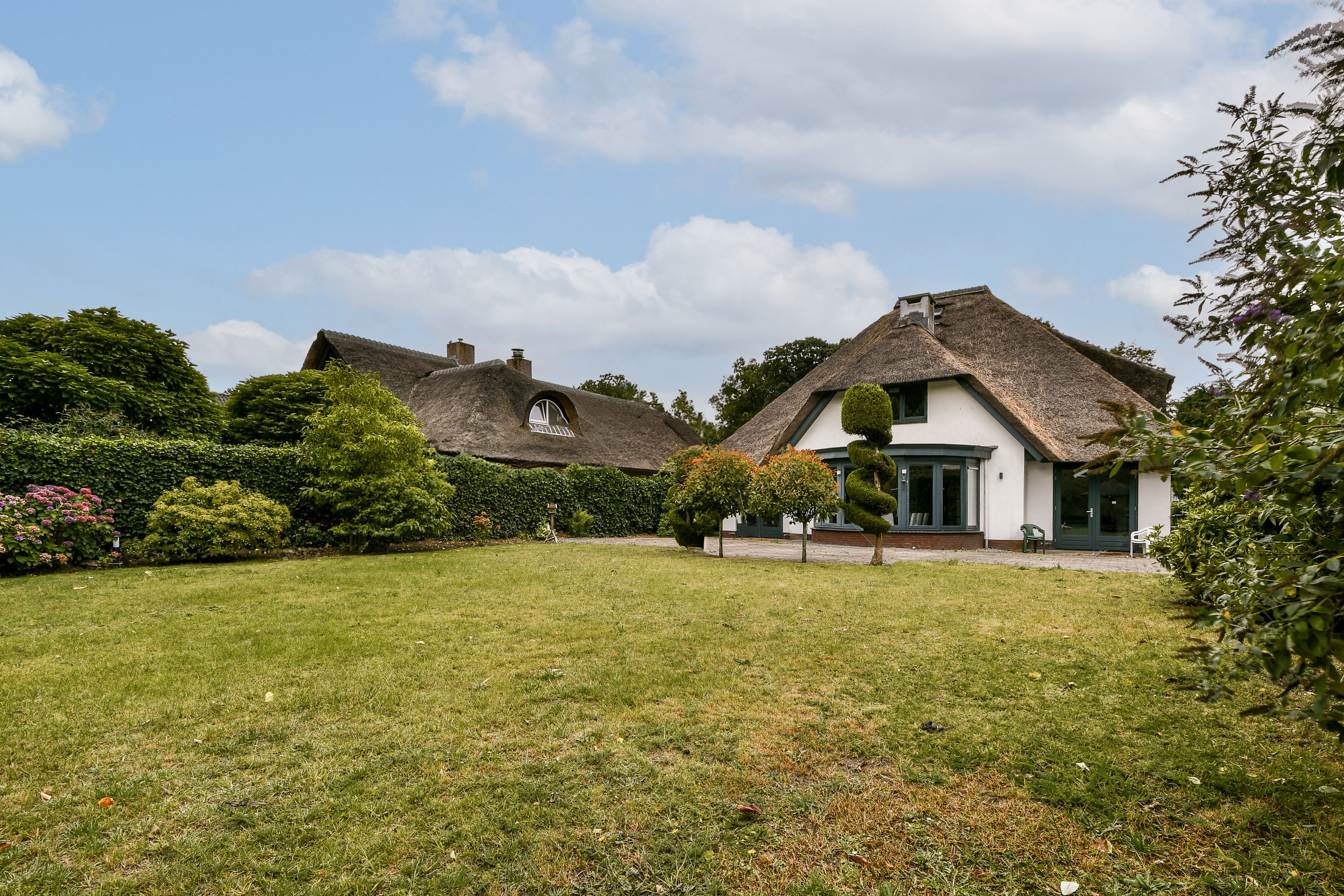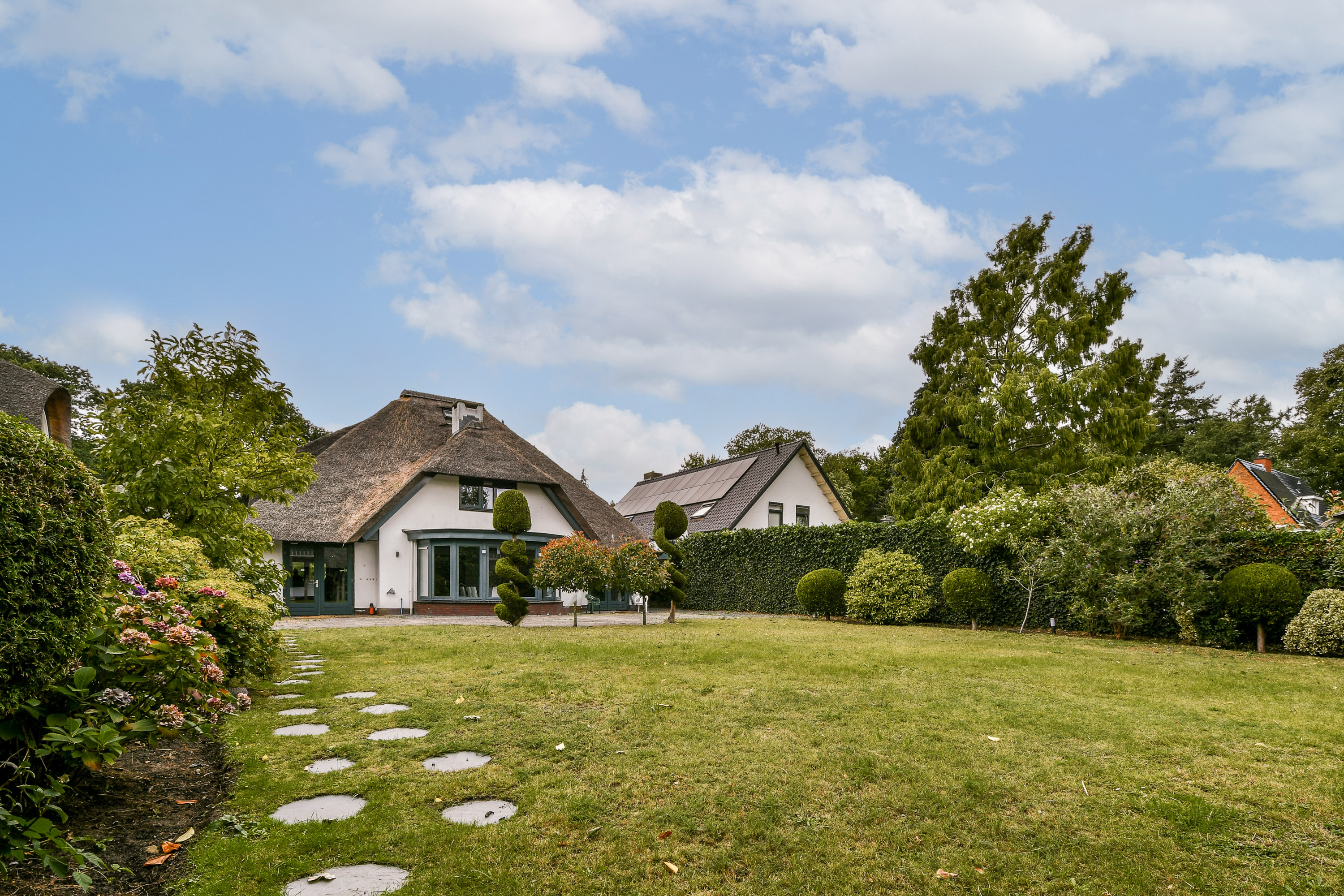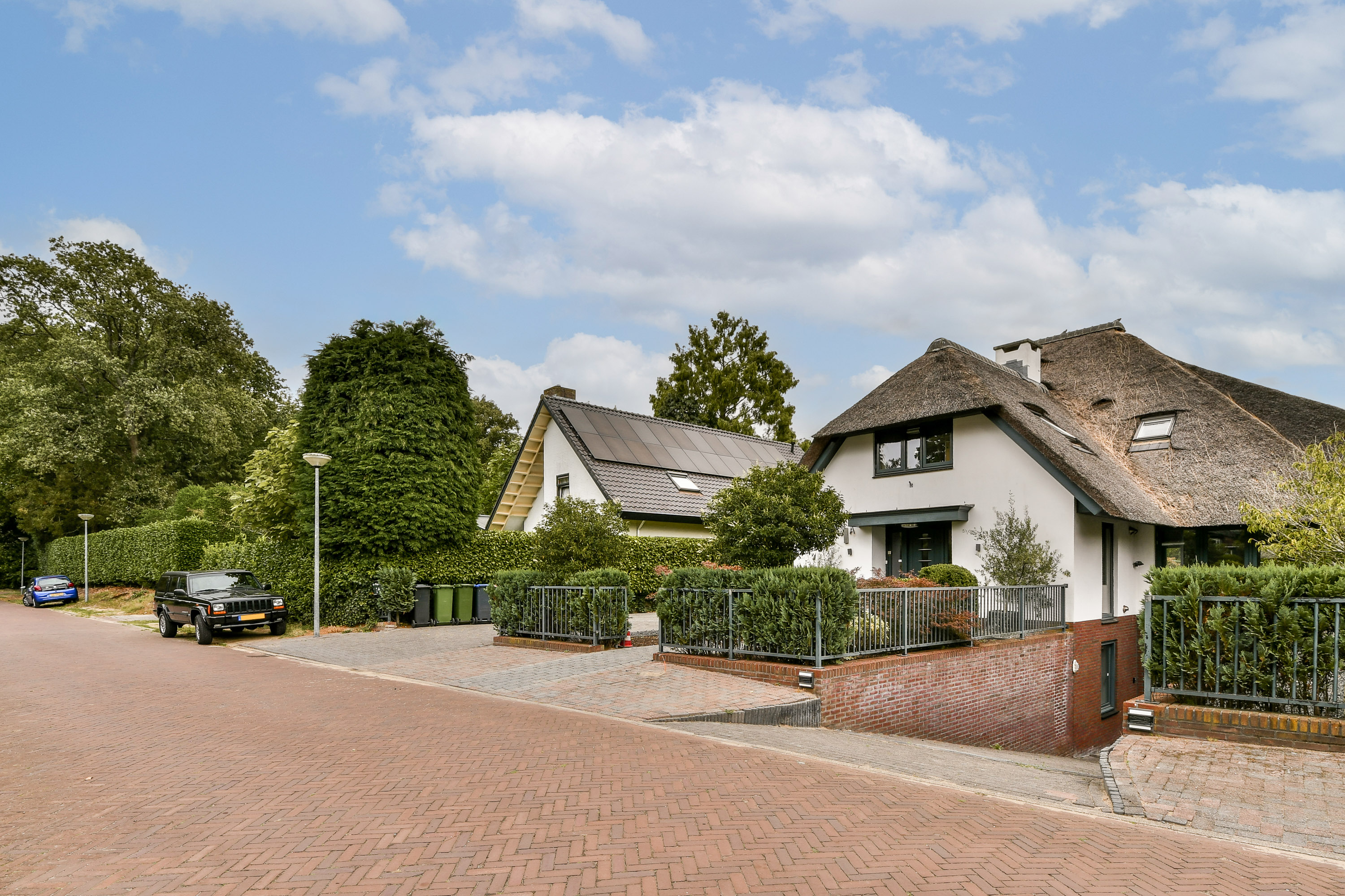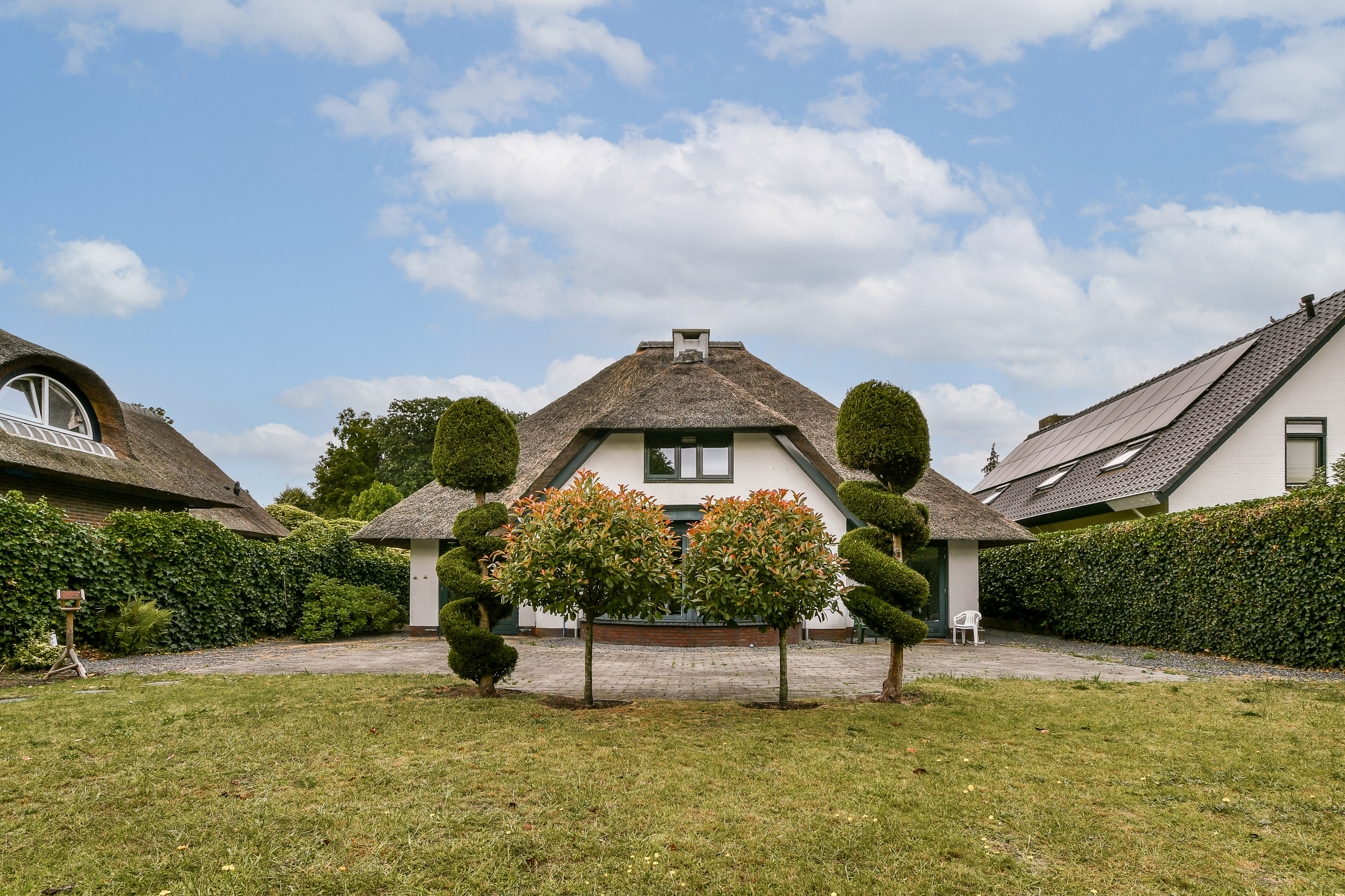 - Vrijstaande villa (2006) met rieten dak;