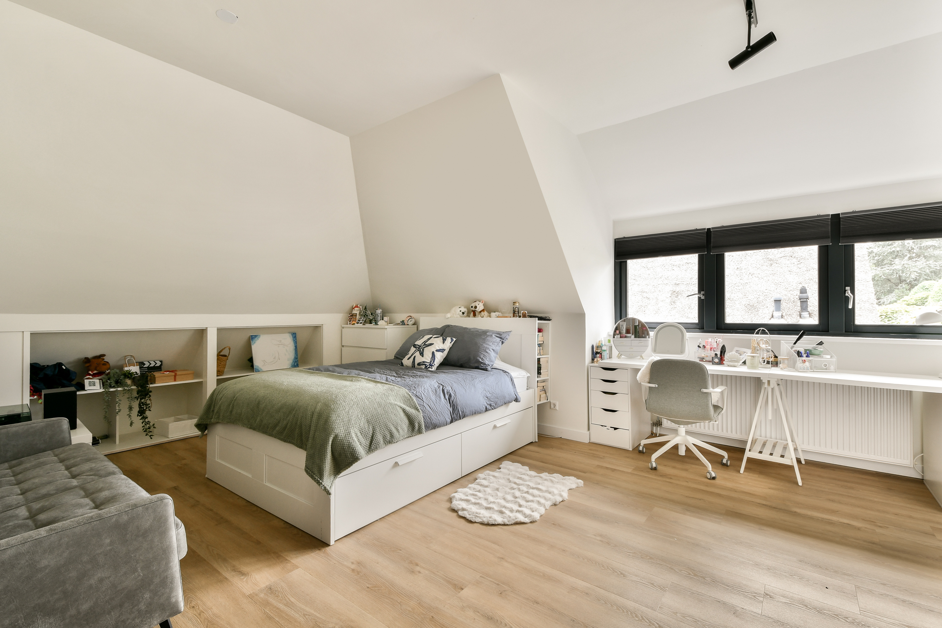 - Tweede en derde slaapkamer met eigen badkamer en bergruimte;