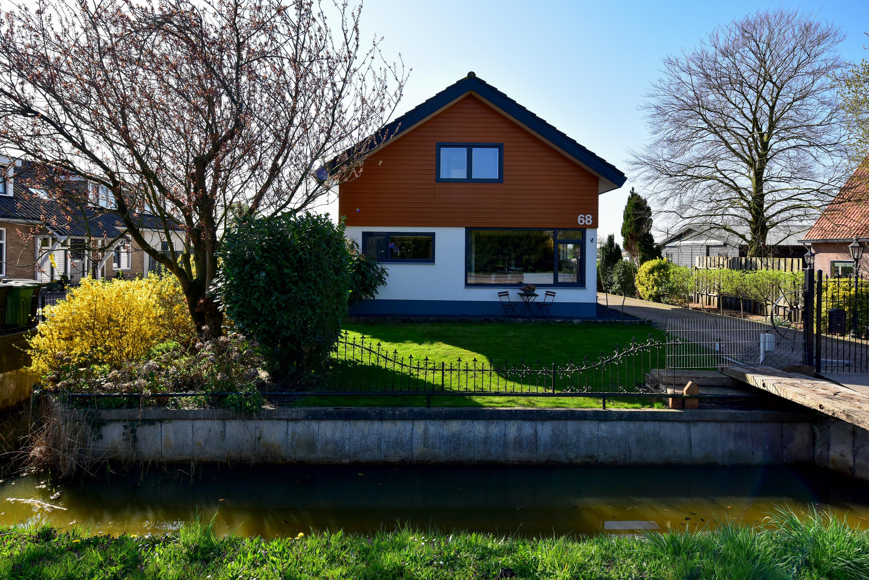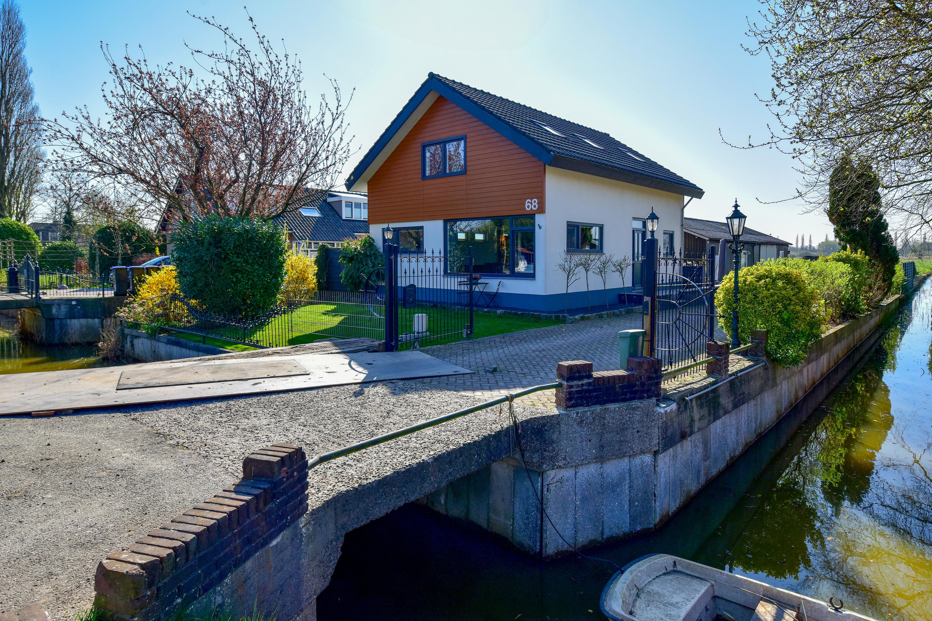 Via de gedeelde toegangsbrug (met elektrische poort) en oprit is de woning te bereiken.