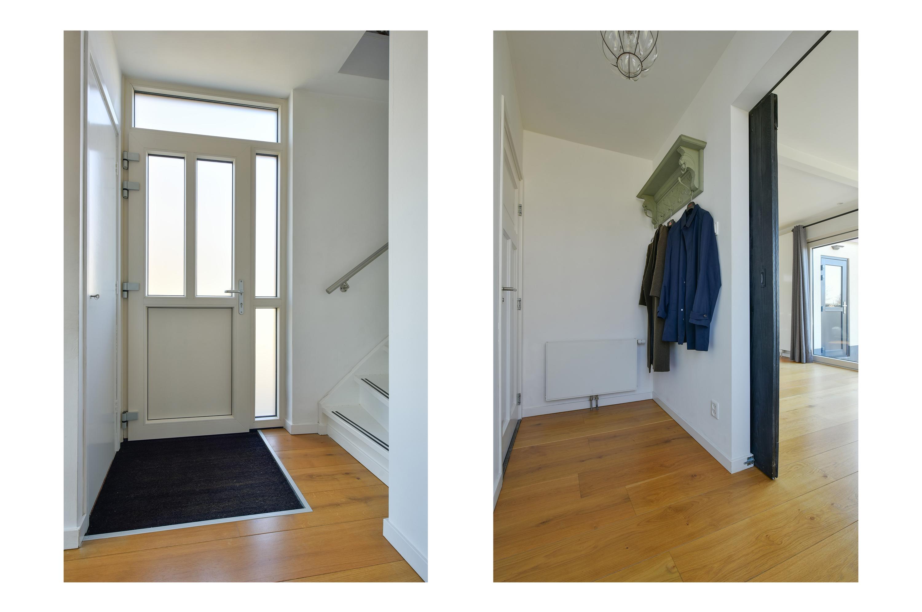 Entree, centrale hal met meterkast, toilet en trapopgang naar de eerste verdieping.