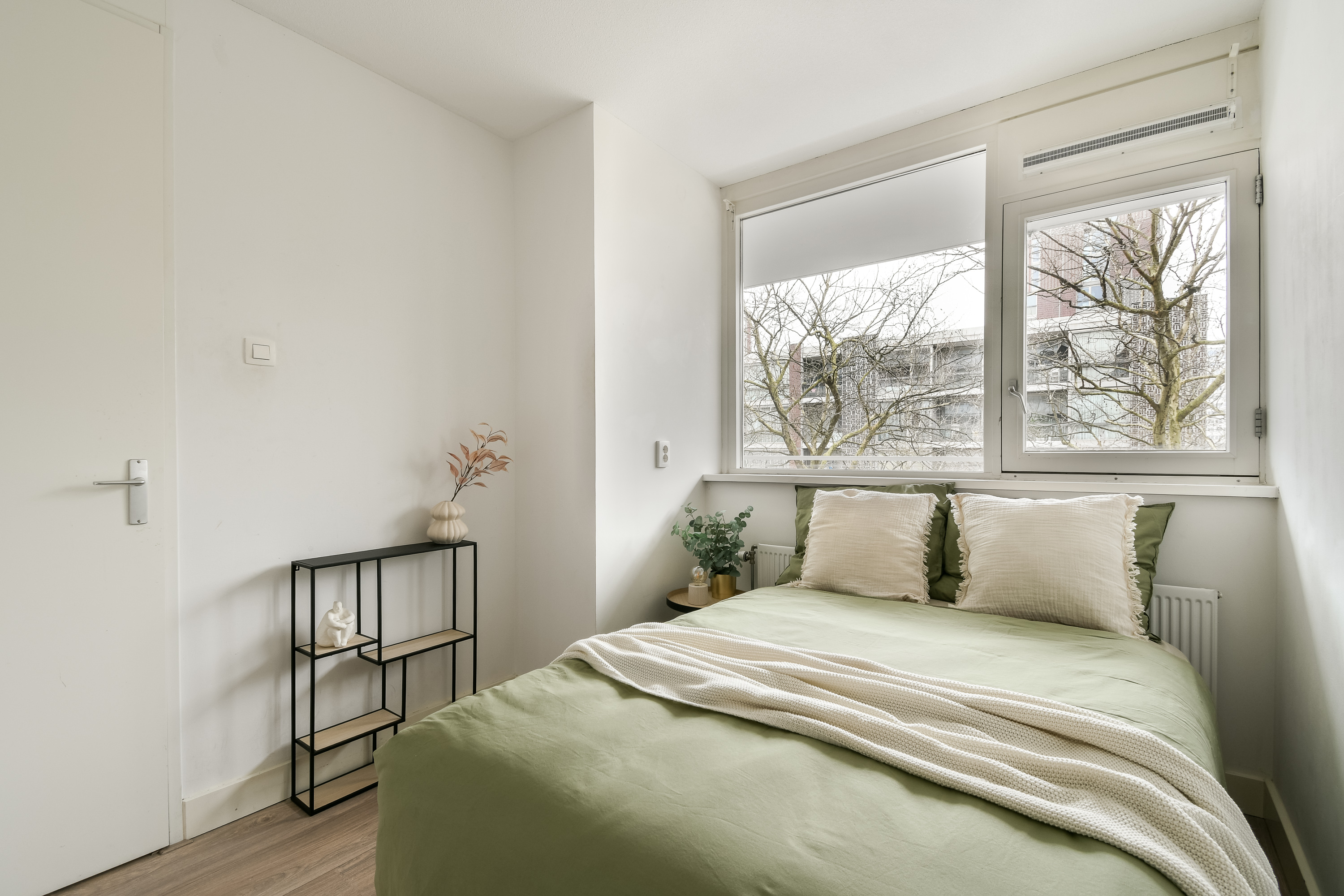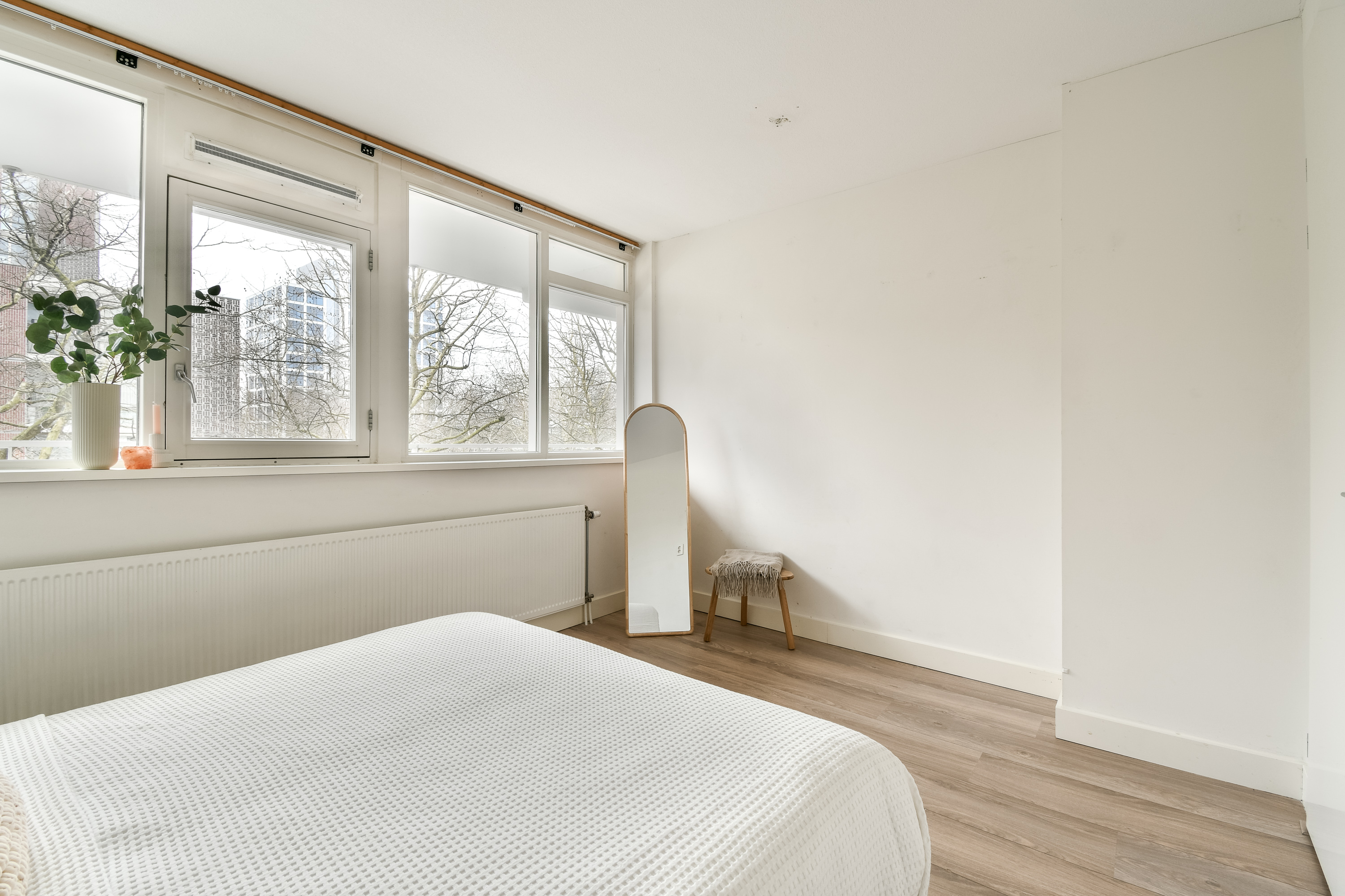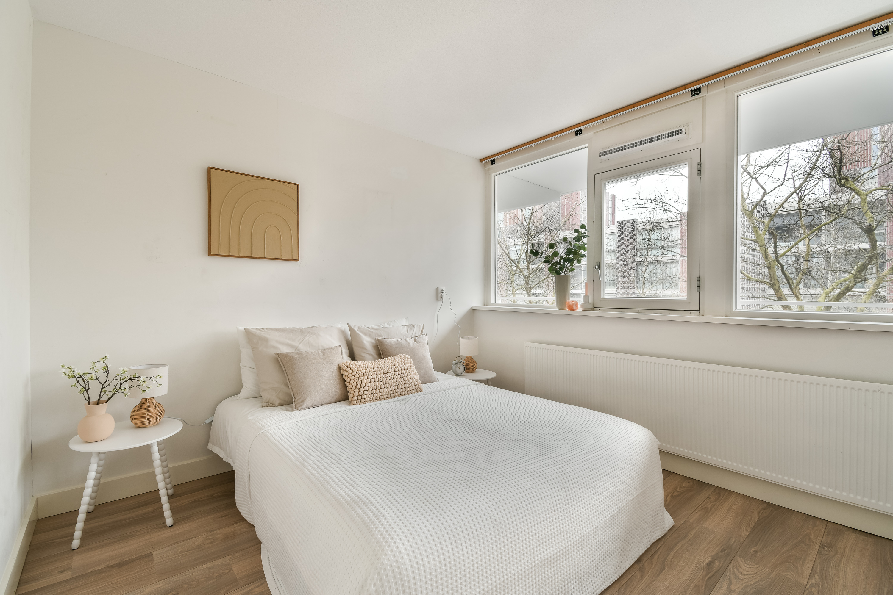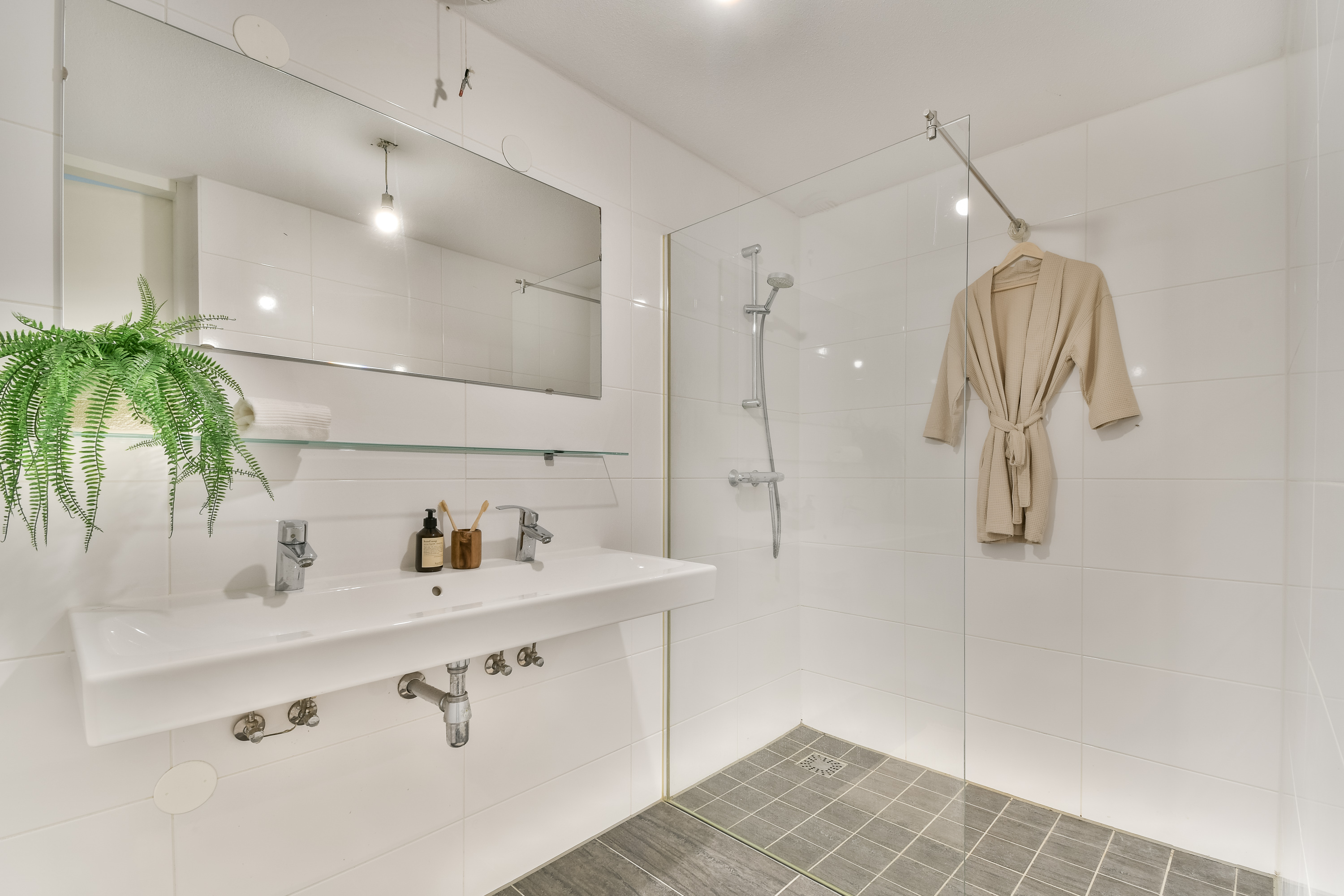 Het appartement beschikt over drie ruime slaapkamers. De badkamer heeft een moderne uitstraling en is voorzien van een inloopdouche en een wastafel met spiegel.