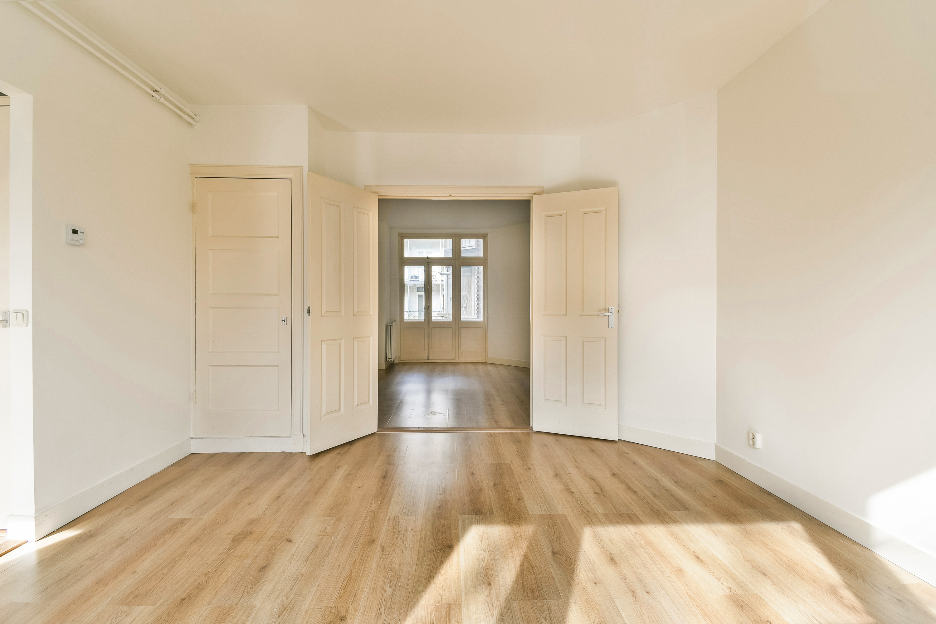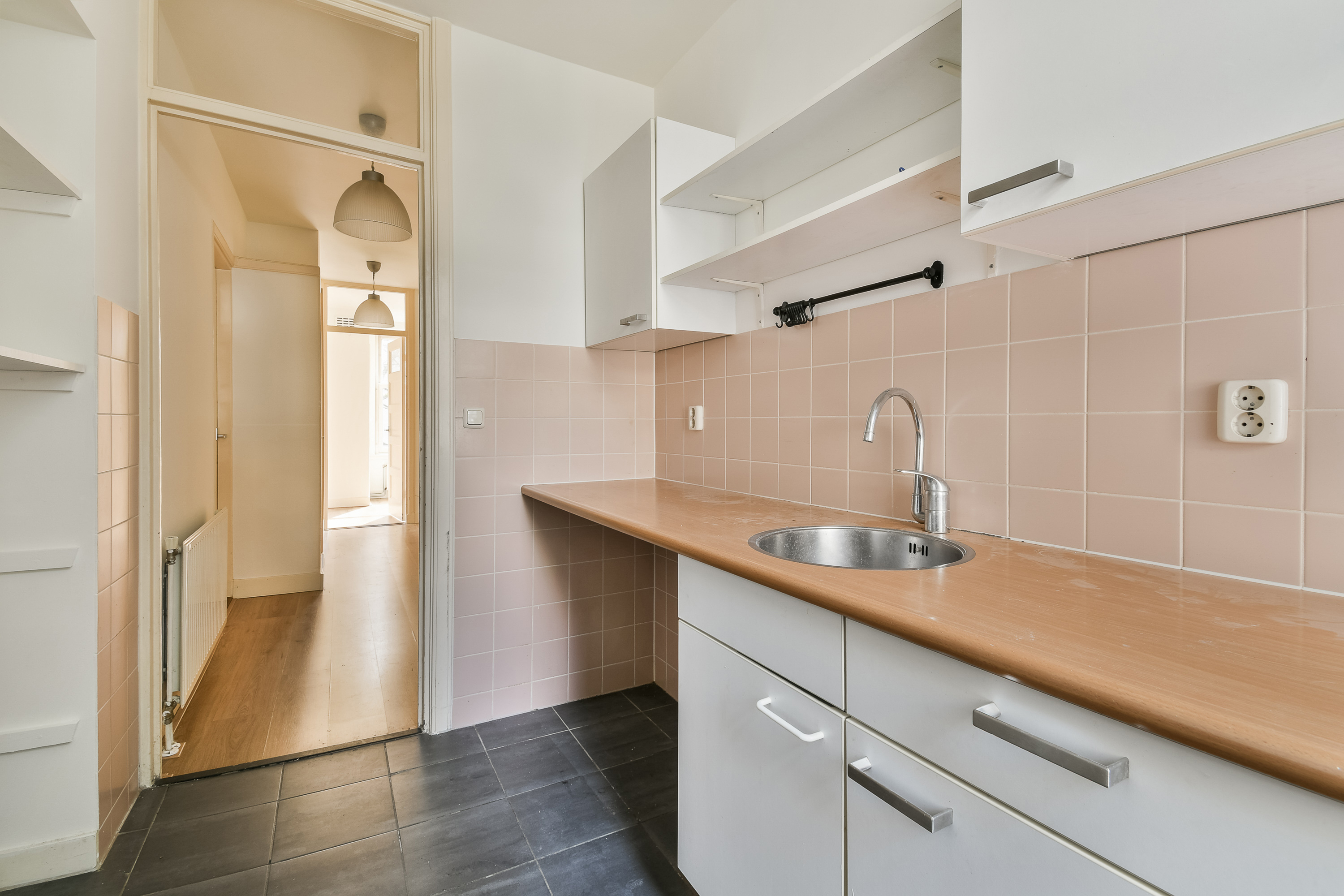 Via de eigen entree betreedt u de woning in een ruime hal, die toegang biedt tot alle vertrekken. Aan de voorzijde ligt de stijlvolle woonkamer, waar de grote raampartijen zorgen voor een prettige hoeveelheid daglicht. De en-suite scheidt de voor- en achterkamer op een natuurlijke manier, waardoor er een fijne balans ontstaat tussen wonen en dineren. Hier is met gemak ruimte voor zowel een royale zithoek als een sfeervolle eethoek. De separate keuken, bereikbaar vanuit de hal, biedt toegang tot het balkon. De keuken zelf biedt volop mogelijkheden om een moderne, eigentijdse inrichting te realiseren — of te wijzigen naar (extra) slaap/werkkamer. De woning beschikt momenteel over twee ruime slaapkamers. De master bedroom ligt aan de achterzijde en biedt voldoende ruimte voor een bed en een kastenwand. De tweede slaapkamer is eveneens goed van formaat en kan uitstekend dienstdoen als slaap- of werkkamer. De badkamer is voorzien van een douche en wastafel, en het separate toilet is via de hal bereikbaar. Beide ruimtes bieden de mogelijkheid om te moderniseren en af te werken naar hedendaagse wensen. Dit appartement behoeft enige modernisatie, maar biedt juist daardoor de kans om het geheel volledig naar eigen smaak en stijl te transformeren tot een comfortabel en eigentijds thuis.